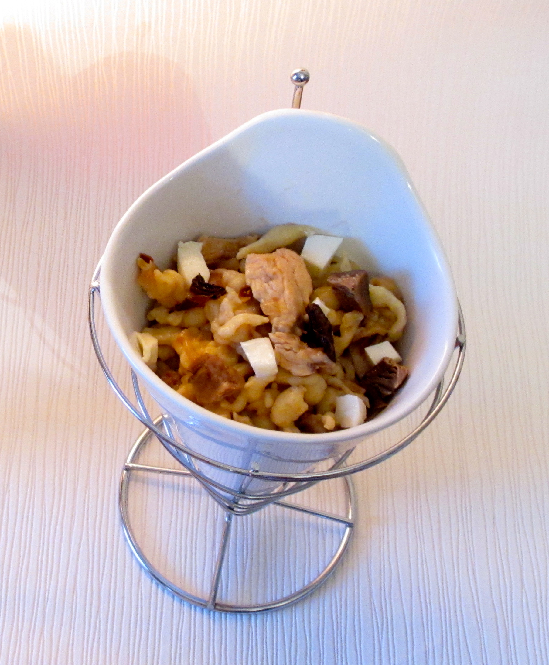spätzle, pâtes alsaciennes, pâtes fraîches, pâtes, dinde, mozzarella champignons, champignons déshydratés, mélange forestier, tomates séchées, paprika fumé, oignon, huile d’olive,plat complet, recette diététique, diététique