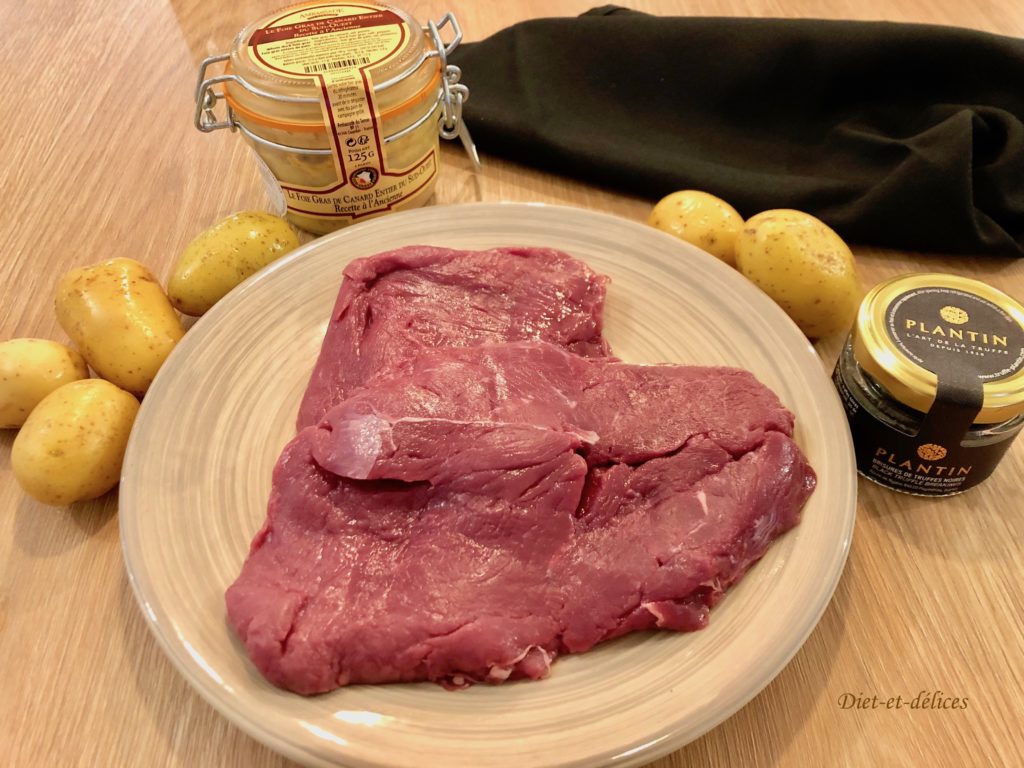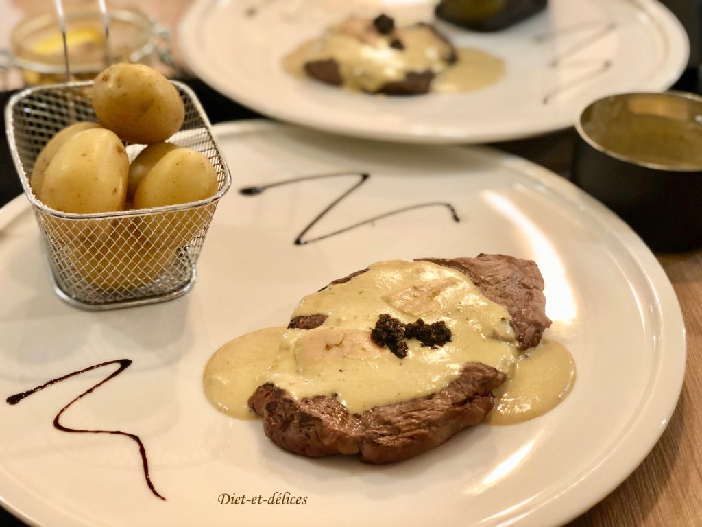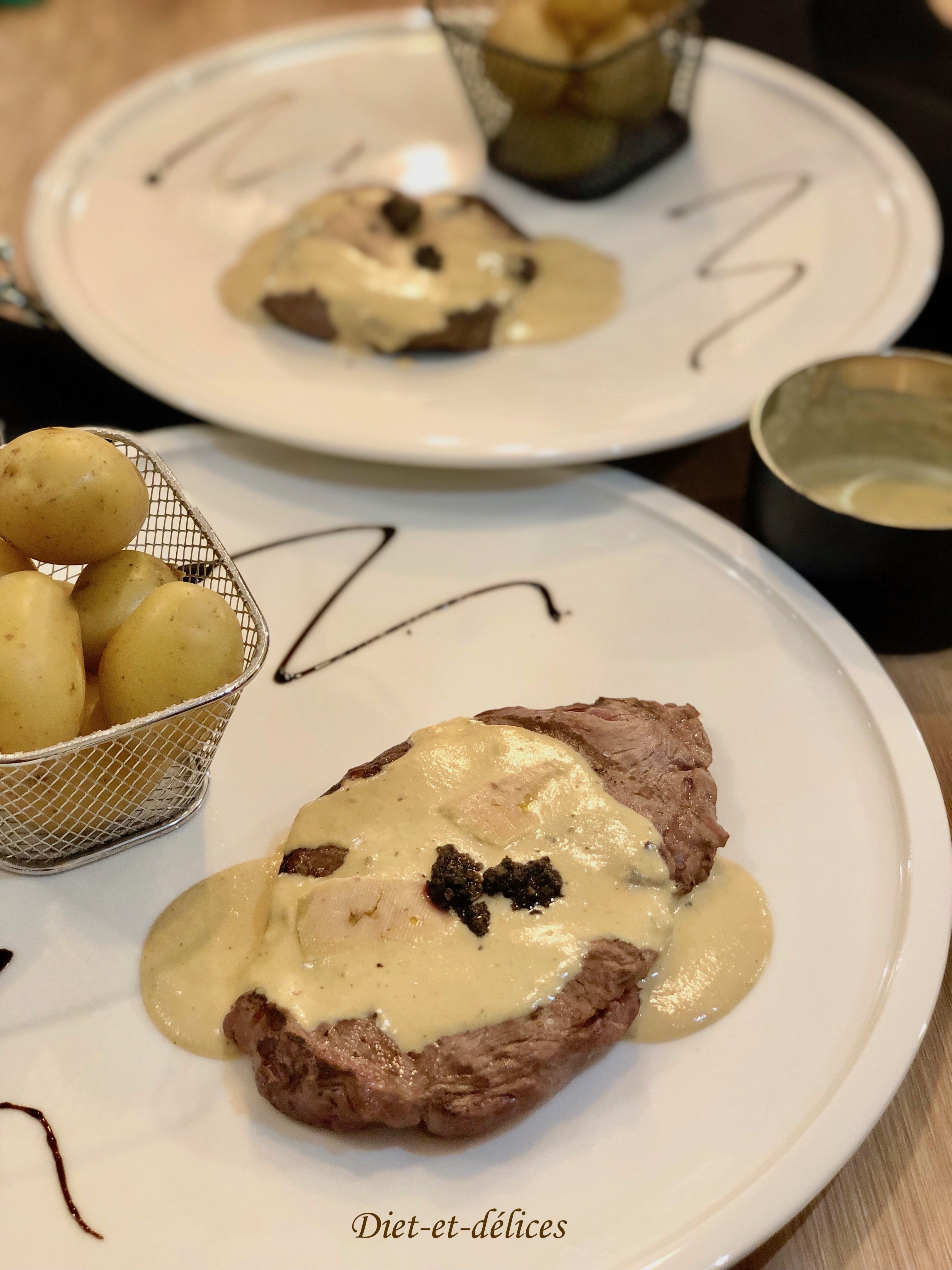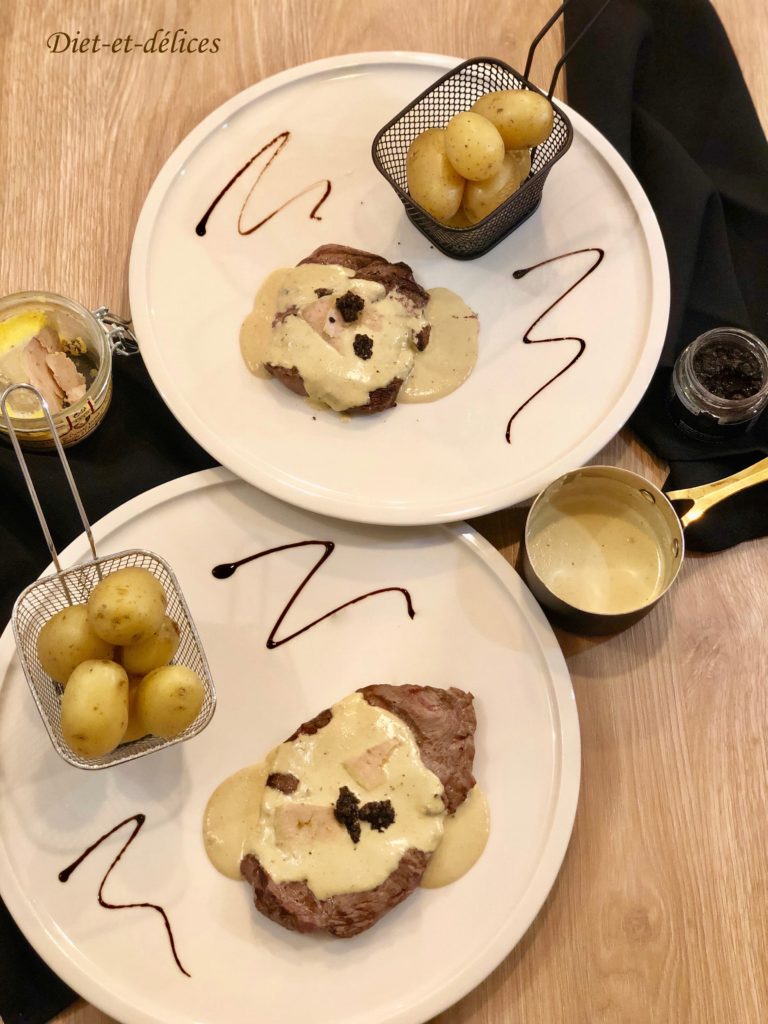 steak, steak de poire, boeufrossini, sauce au foie gras, foie grastruffes, cuisine de fêtes