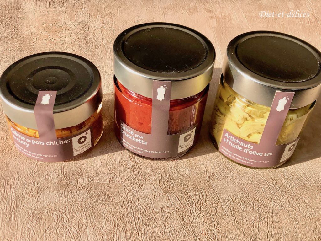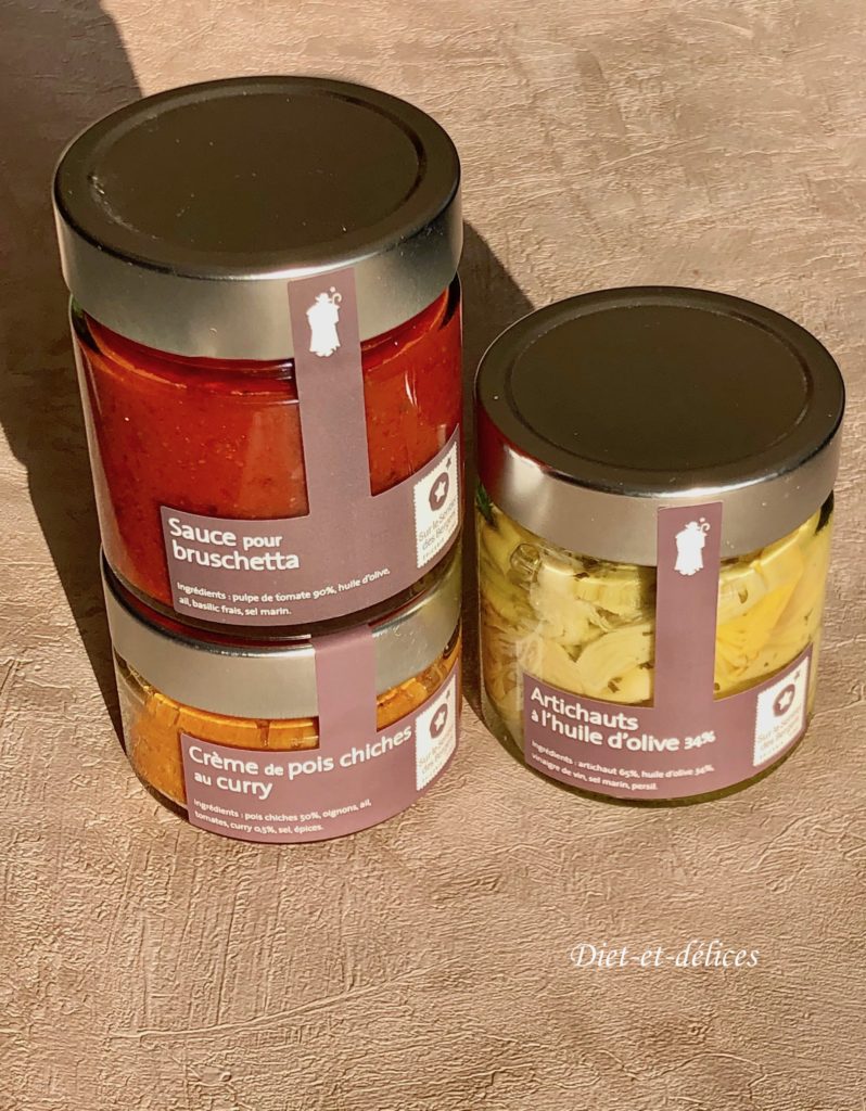 - des antipasti : tomates séchées, sauce pour bruschetta, artichauts à l’huile d’olive, chips artisanales, amandes apéritives… élaborés à base de recettes artisanales originaires des Alpes de Hautes Provence, et du Piémont (Italie).