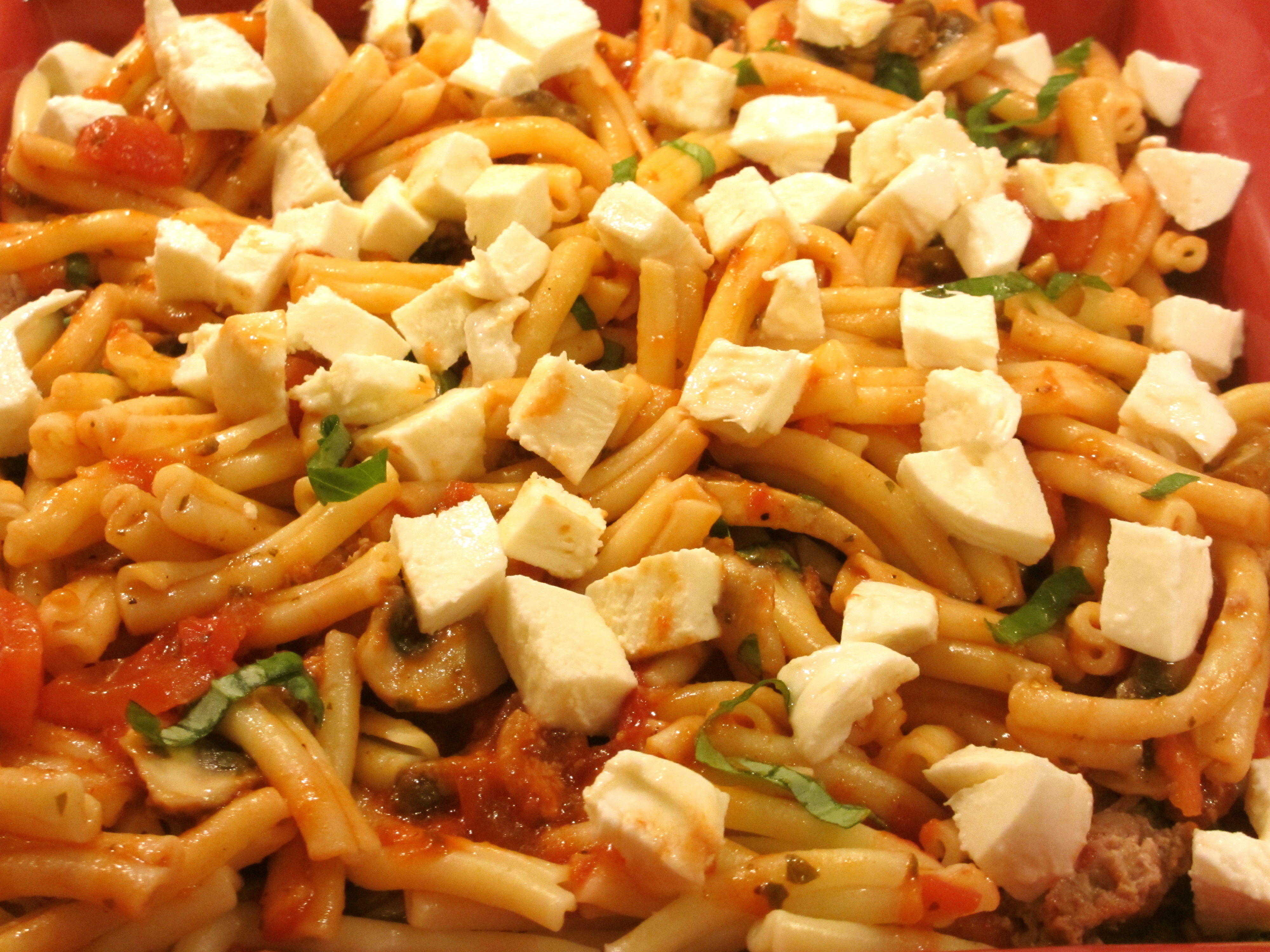 Dés de poulet mijotés aux champignons et à la sauce tomate