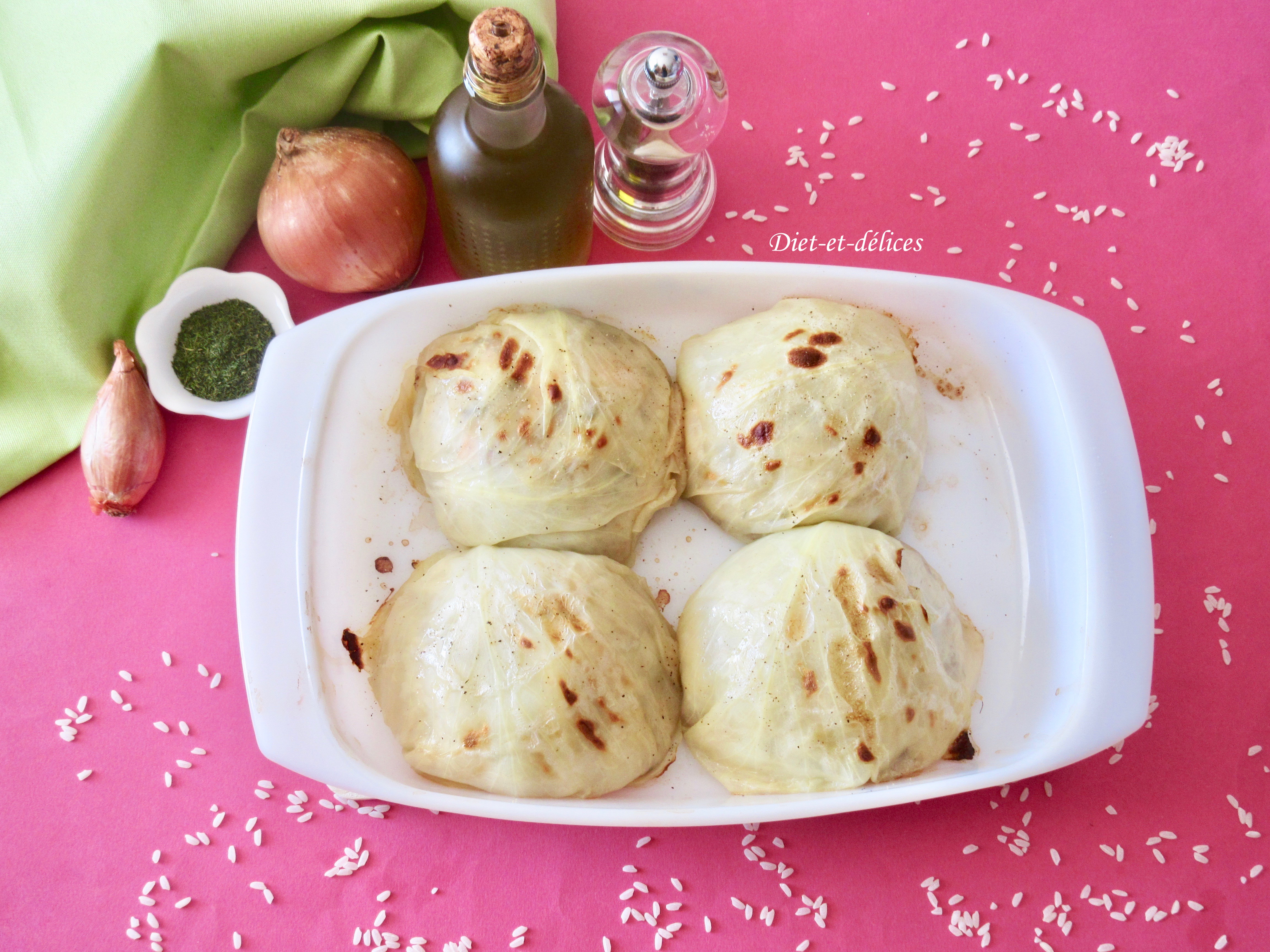 Chou blanc farci au saumon fumé et riz parfumé
