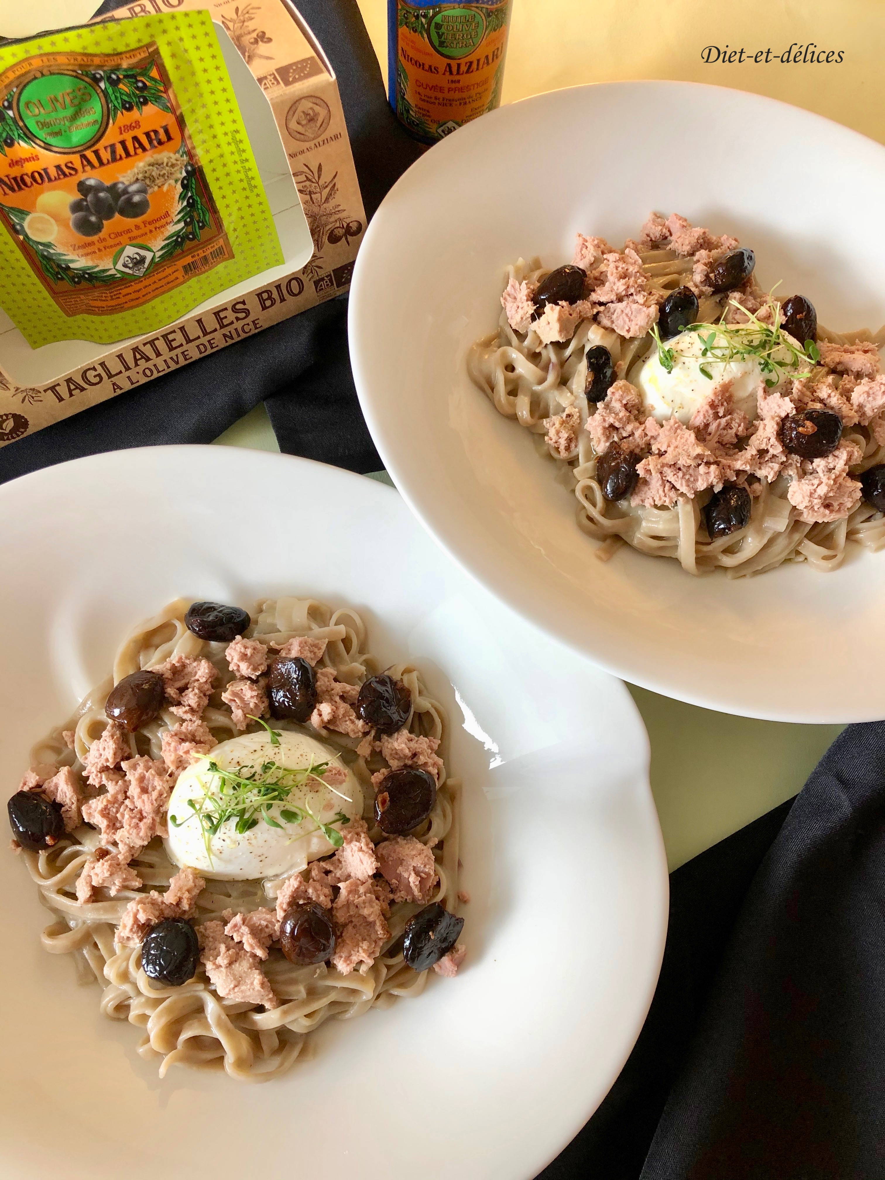 tagliatelles, olives, pâtes, mozzarella, thon, pâtes au thon