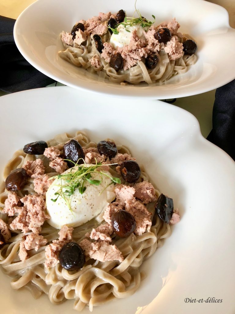- – tagliatelles à la burrata et tomates cerises au four