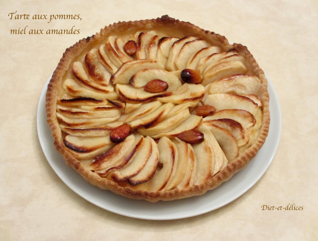 tarte, pommes, miel aux amandes, tarte aux pommes, dessert, pâte brisée, tarte aux pommes et miel