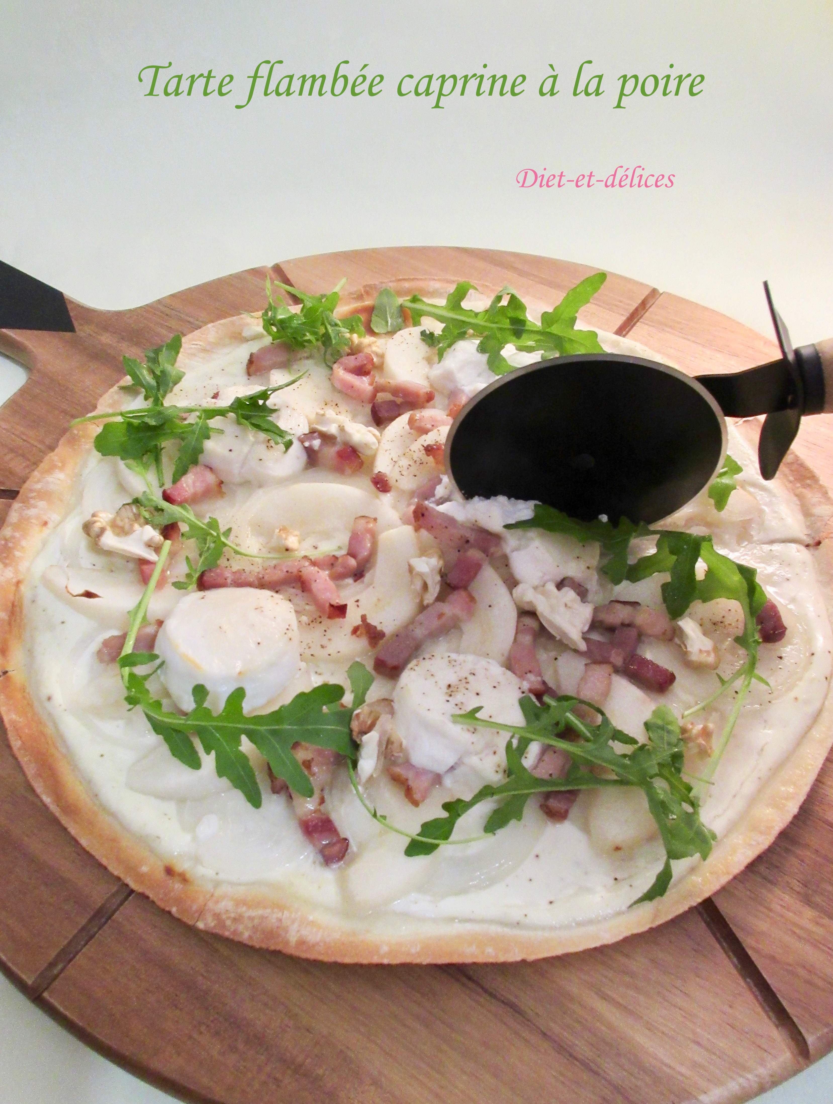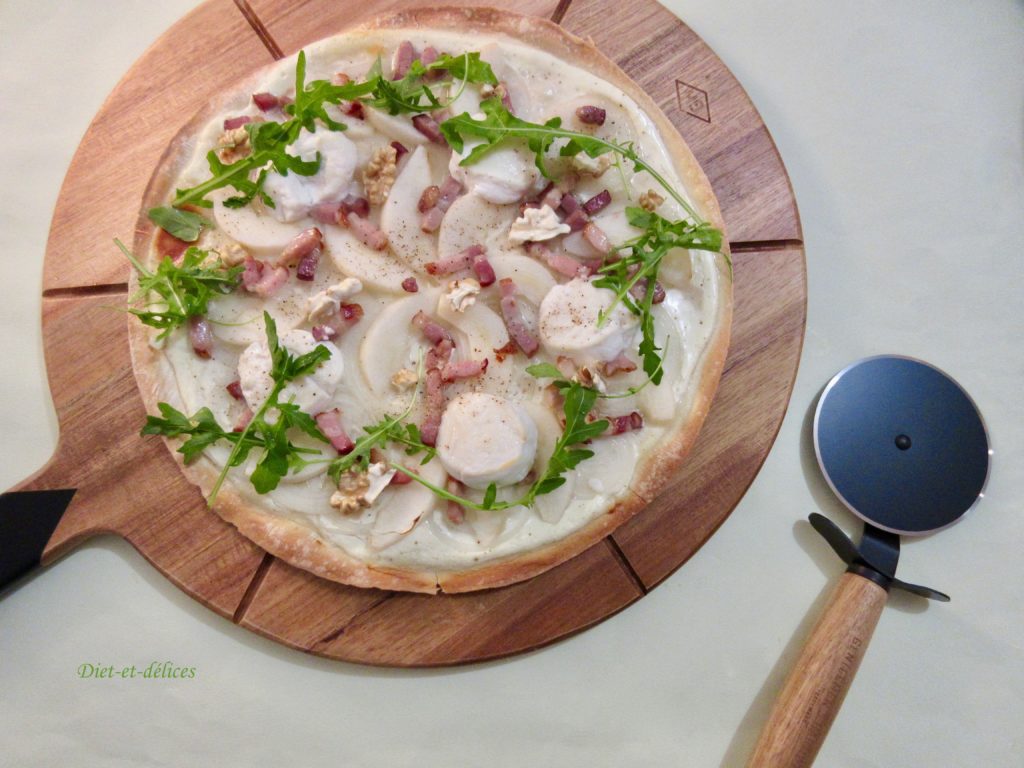 tarte flambée, cuisine alsacienne, poire, miel, sucré salé, chèvre frais, lardon, oignon, plat complet