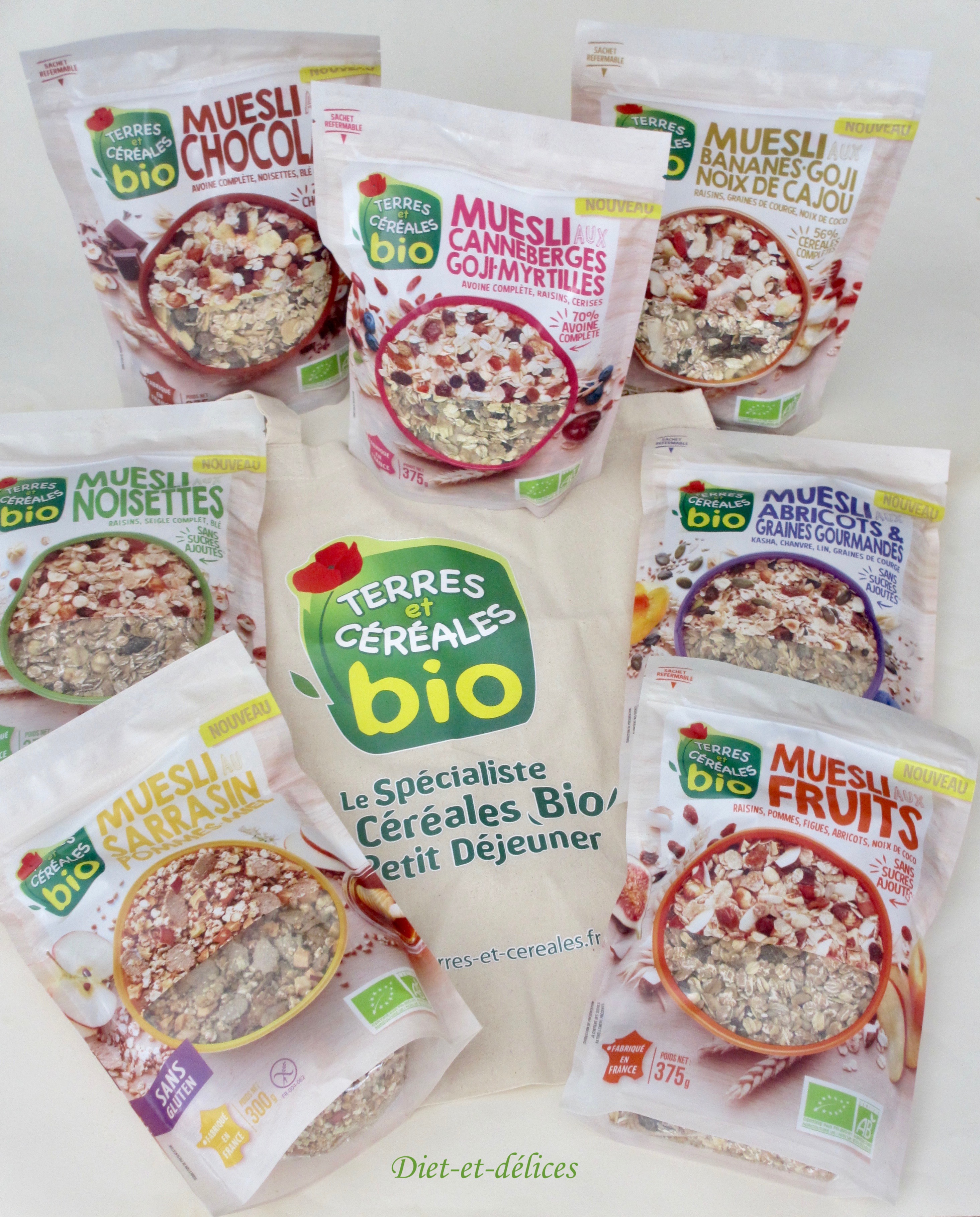 Terre & céréales est le spécialiste des céréales biologiques pour le petit-déjeuner. Depuis plus de 25 ans, Terre & céréales commercialise des mueslis bio. Les trois sites de production se trouvent en France , en Ille et Vilaine, dans le Calvados, et dans les Deux-Sèvres. Engagé pour le développement durable de l’agriculture biologique, Terre & céréales privilégie les producteurs de proximité. Différents types de céréales pour le petit-déjeuner sont proposés : flocons, mueslis, mueslis croustillants, flakes, pétales, boules, céréales fourrées… dont certains sont sans sucres, riche en fibres, sans gluten, sans huile de palme, à base de céréales complètes.