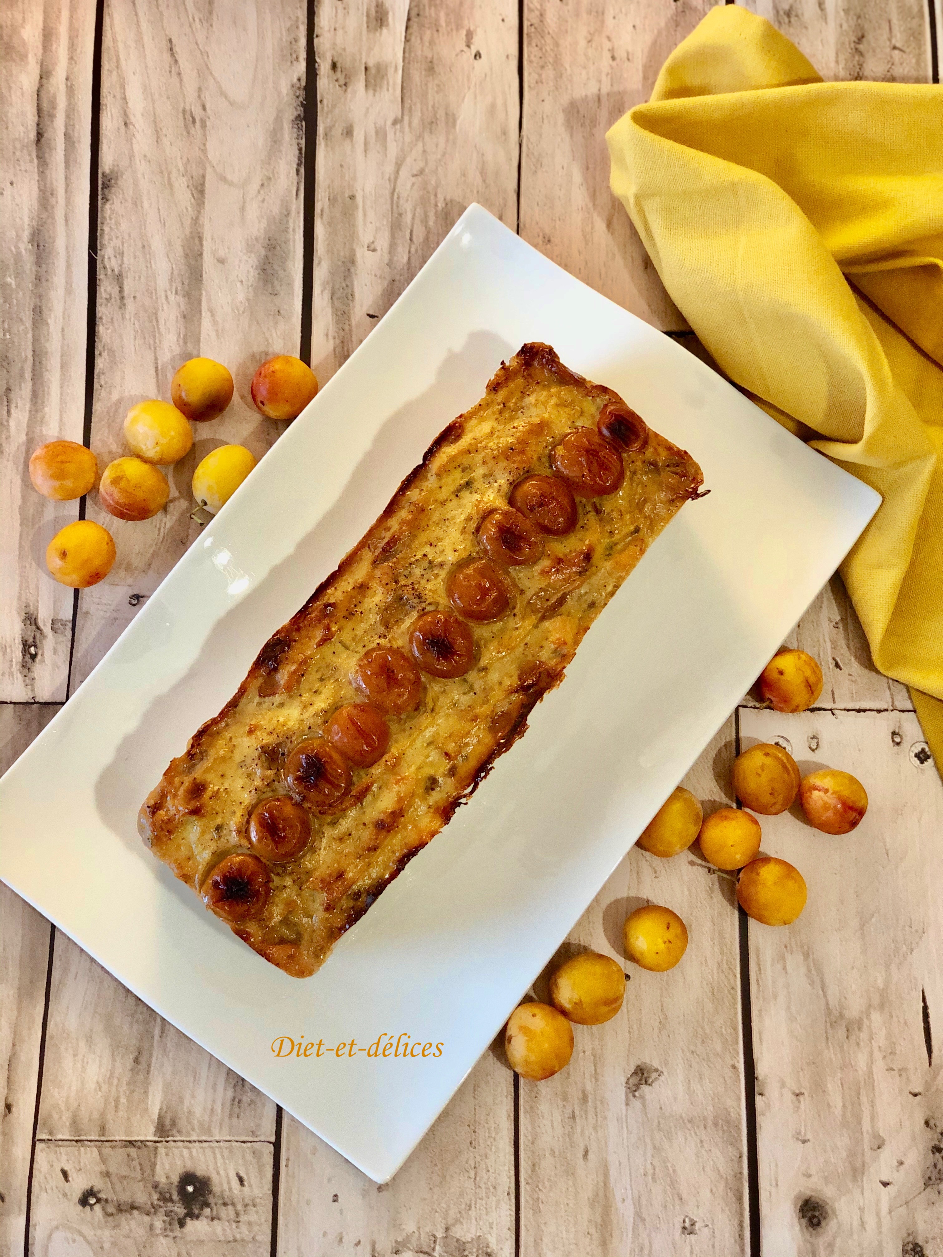 - Ajouter la moutarde et les mirabelles dénoyautées et coupées en quatre. Mélanger à l’aide d’une maryse ou d’une cuillère en bois.