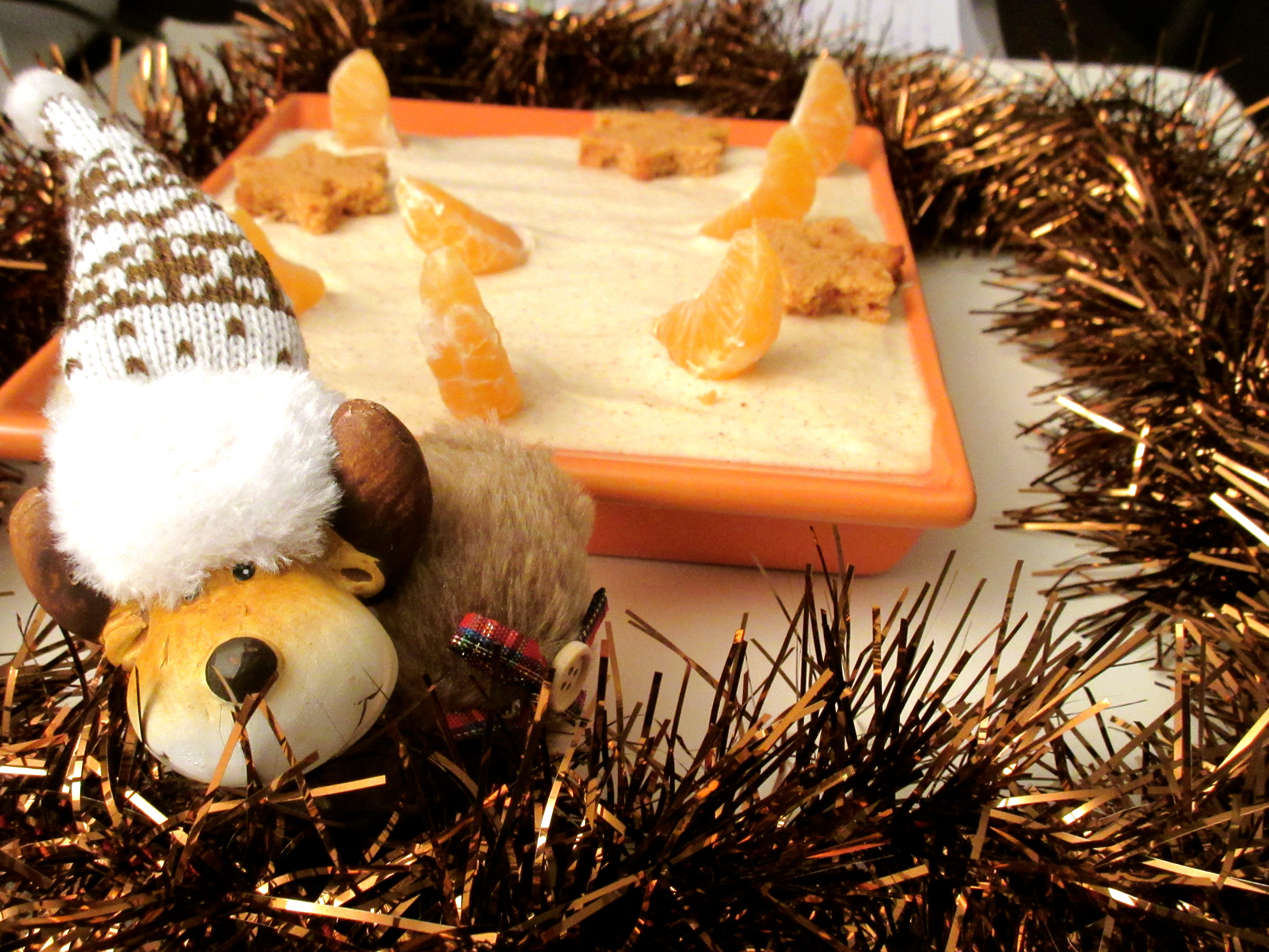 - Le lendemain, décorer avec du pain d’épices et quelques quartiers de mandarines.