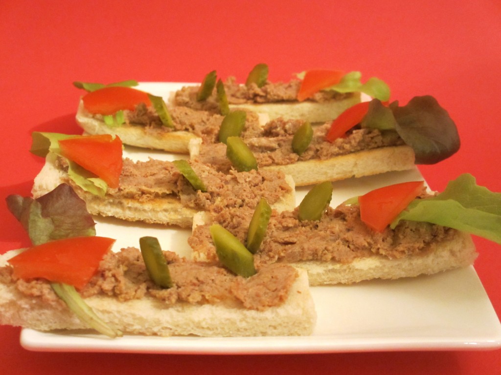 - Etaler les rillettes sur les bandes de pain grillé.