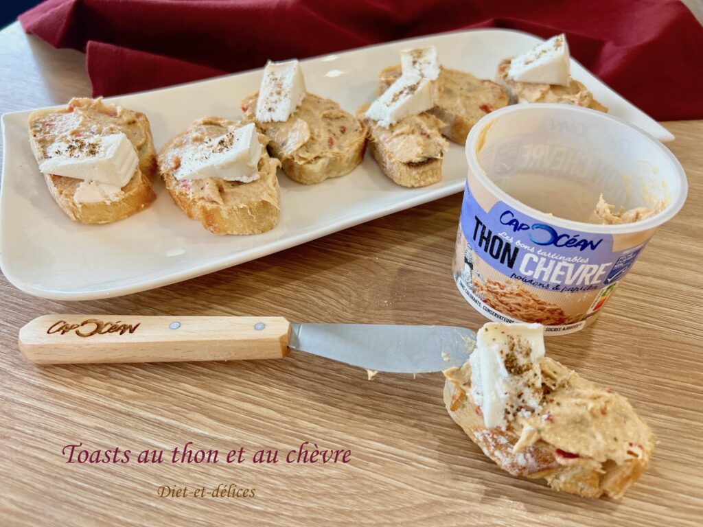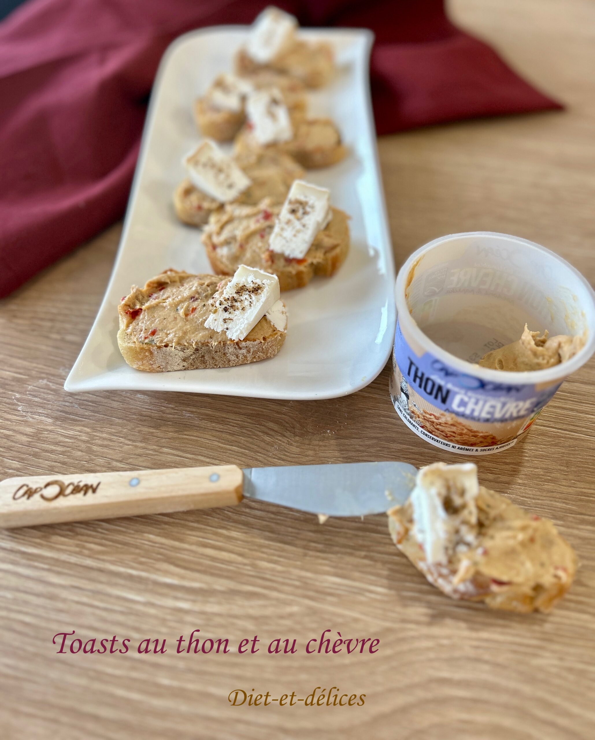 Pour 14 toasts Temps de préparation : 5 minutes Temps… Lire la suite : Toasts au thon et au chèvre - Gaufres salées aux rillettes de saumon, avocat et oeufs de saumon