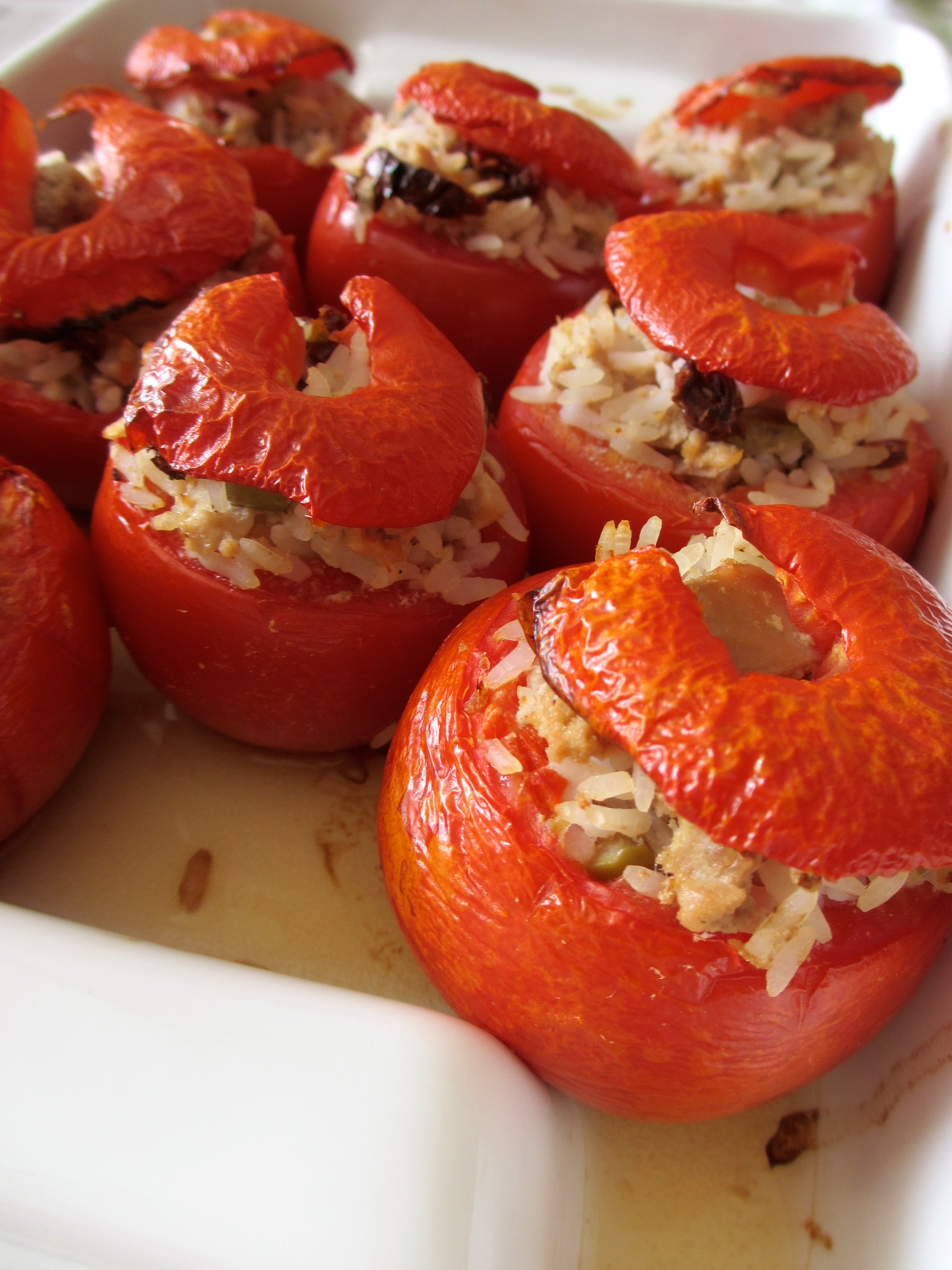tomates farcies, tomates, riz, tomates séchées, olives, farce plat complet, thon, thon en boîte,thon au naturel, poisson