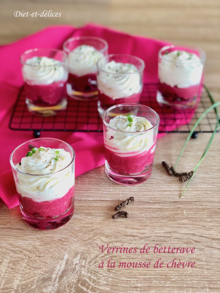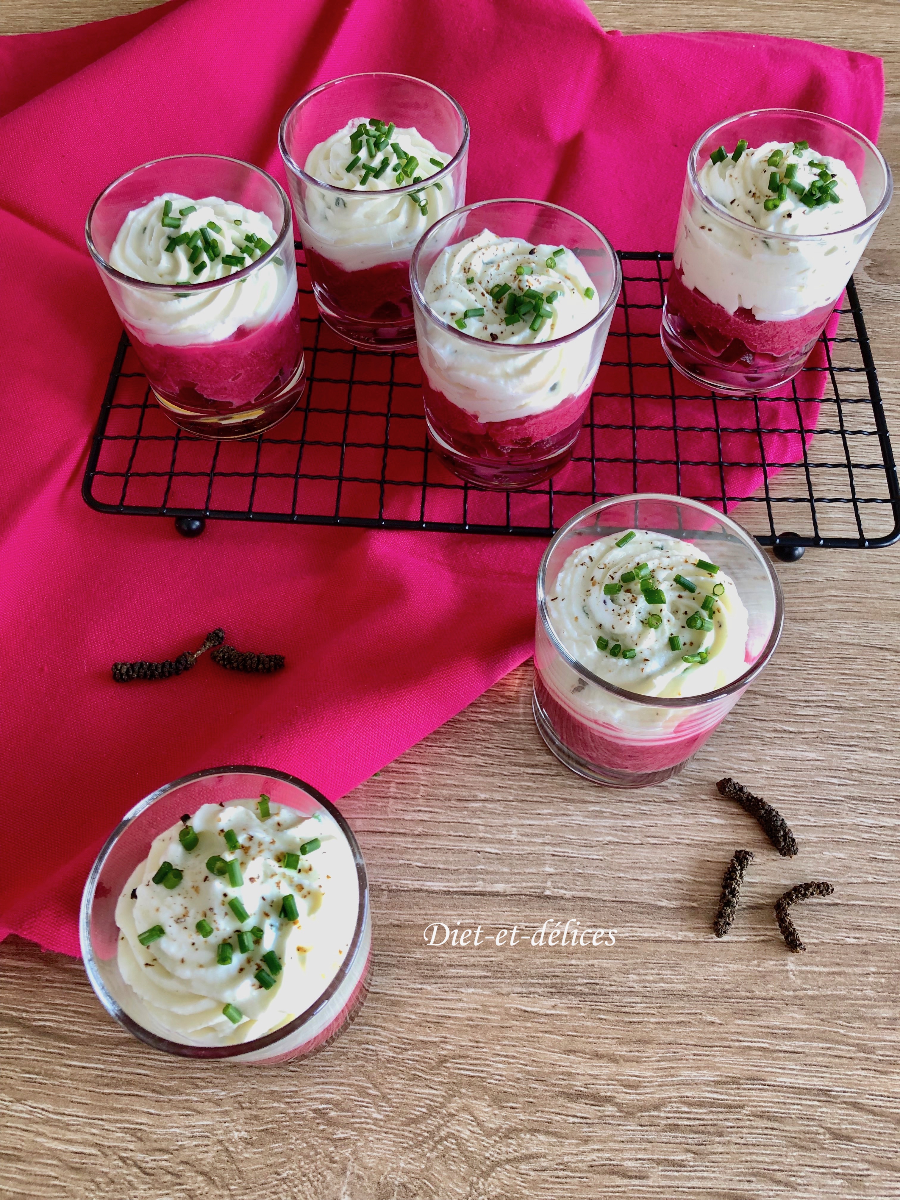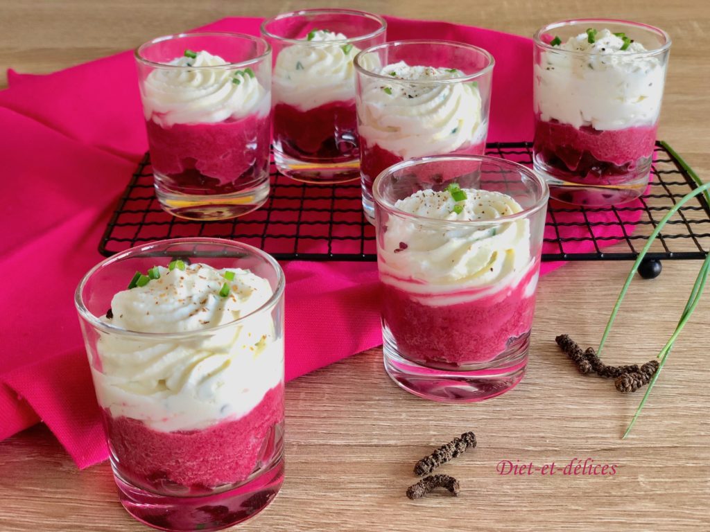 verrine, betterave, chèvre, apéro, yaourt nature, fromage de chèvre, apéritif, mousse de chèvre, ciboulette