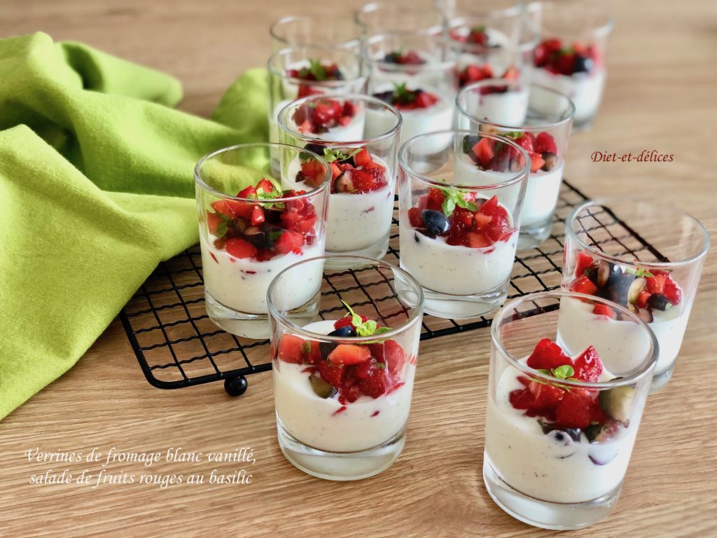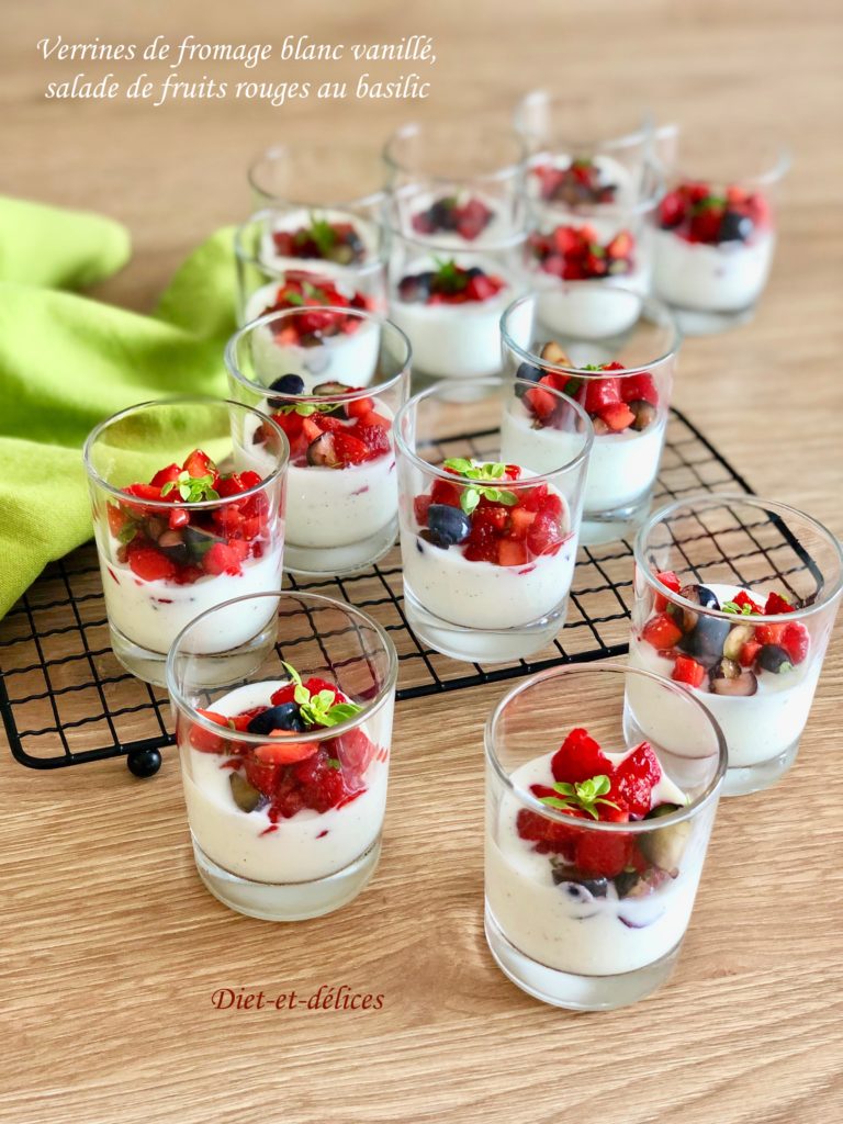 verrine, fromage blanc, vanille, fraise, framboise, myrtille, basilic, fruits rouges, dessert