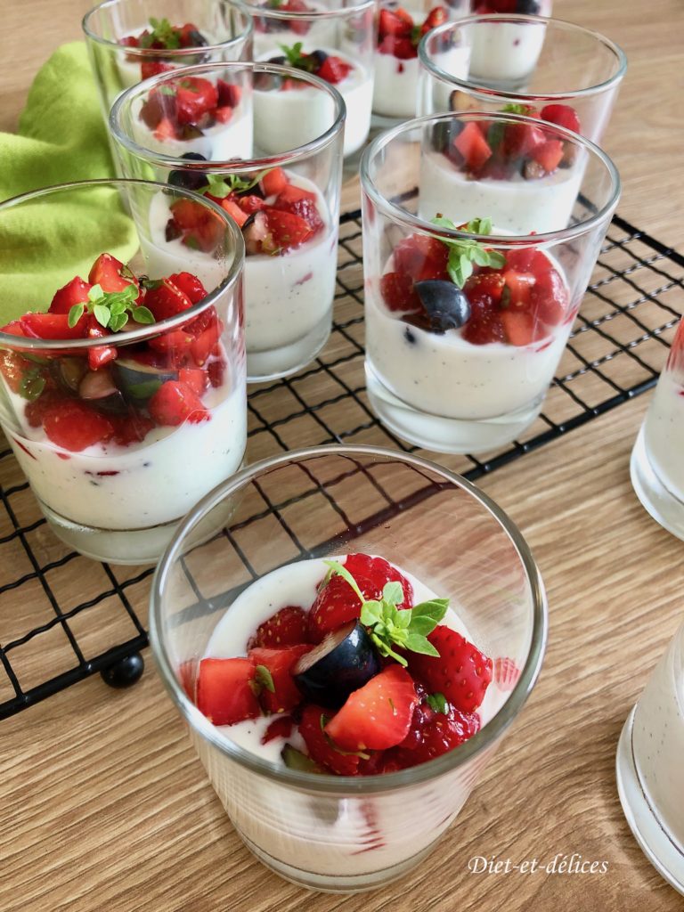 verrine, fromage blanc, vanille, fraises, framboise, myrtille, basilic, fruits rouges, dessert