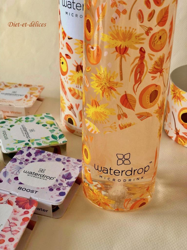 Waterdrop est un mélange de fruits et de plantes, afin de créer une boisson saine et parfumée. Sans sucre, sans conservateur chimique et adapté aux diabétiques, elle contient des vitamines et permet de vous hydrater tout au long de la journée. Proposé sous forme de petits cubes, cette microdrink sans sucre transforme l’eau en une boisson rafraîchissante pleine d’extraits de fruits et de plantes provenant des plus belles régions du monde.