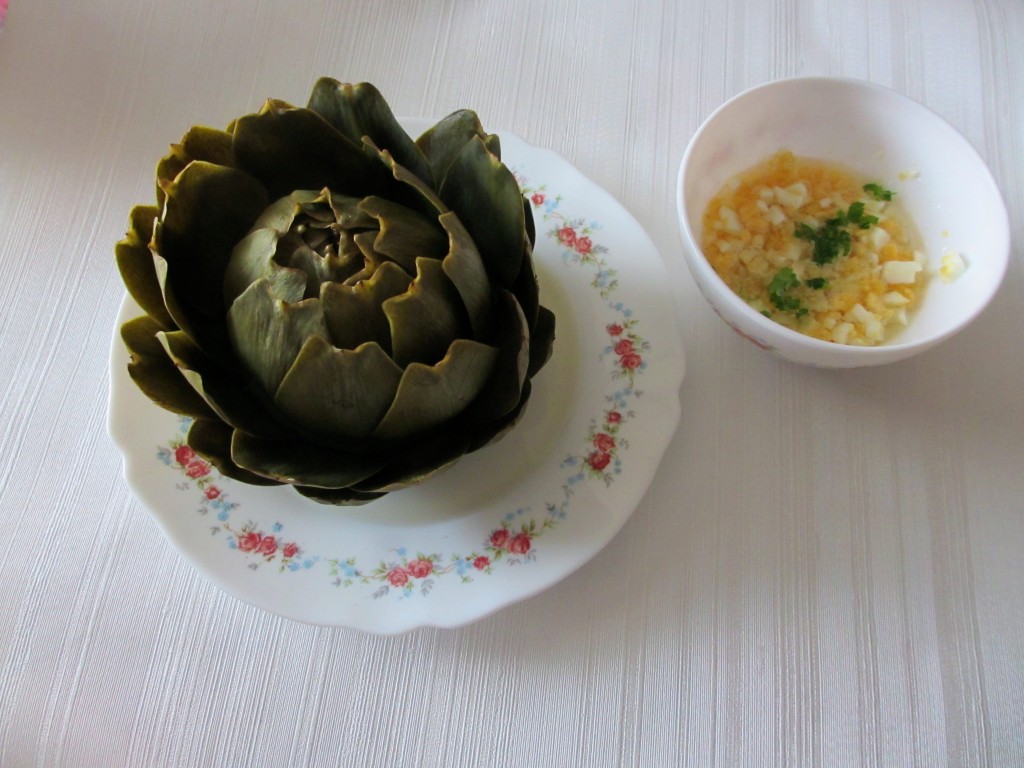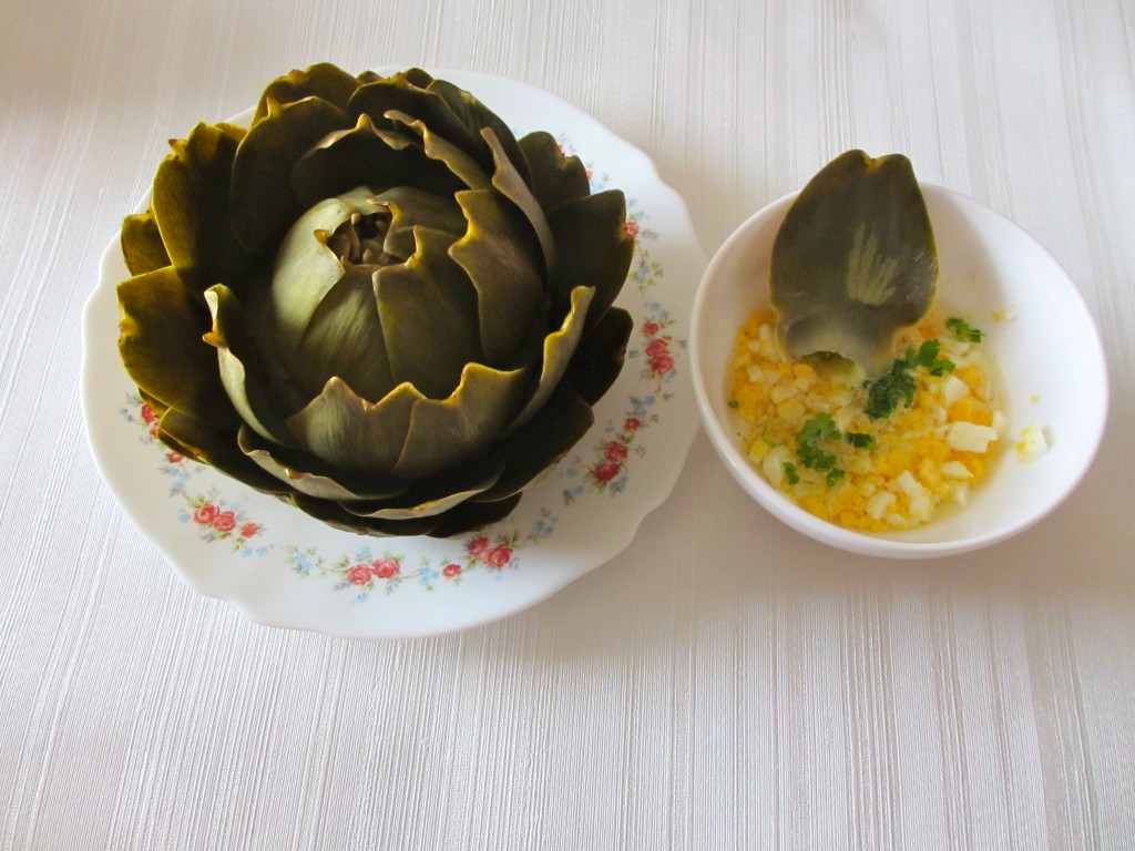 artichaut, artichaut vinaigrette, vinaigrette allégée, oeufs, oeufs durs, cuisine diététique