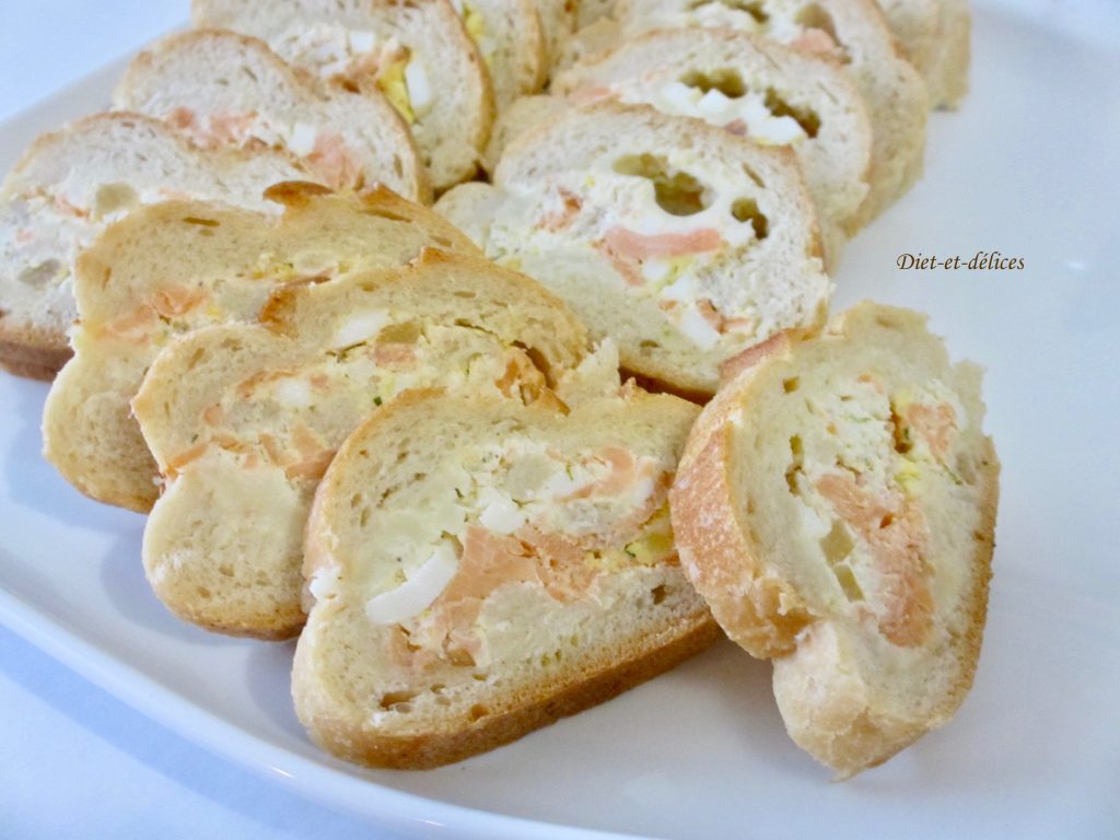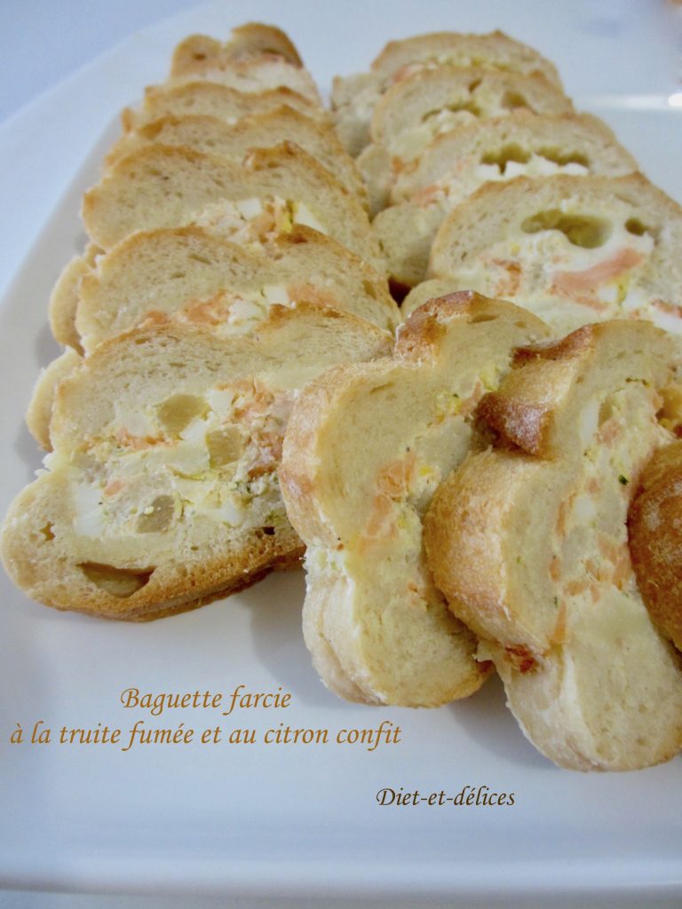 apéro, apéritif, baguette,truite fumée, citron confit, baguette farcie, oeuf dur, fromage frais, baguette farcie à la truite