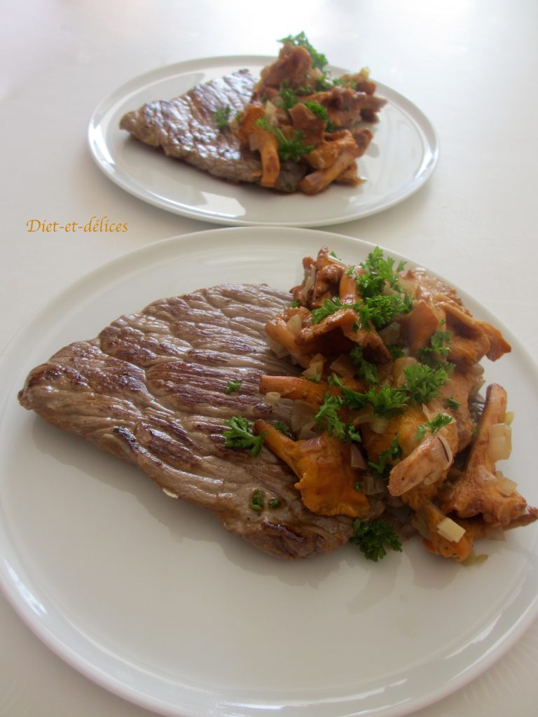 boeuf, bifteck, girolles, boeuf aux girolles, bifteck aux girolles, champignons