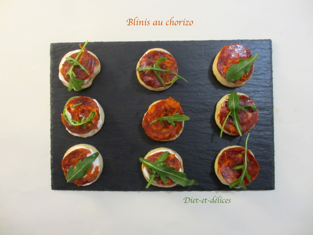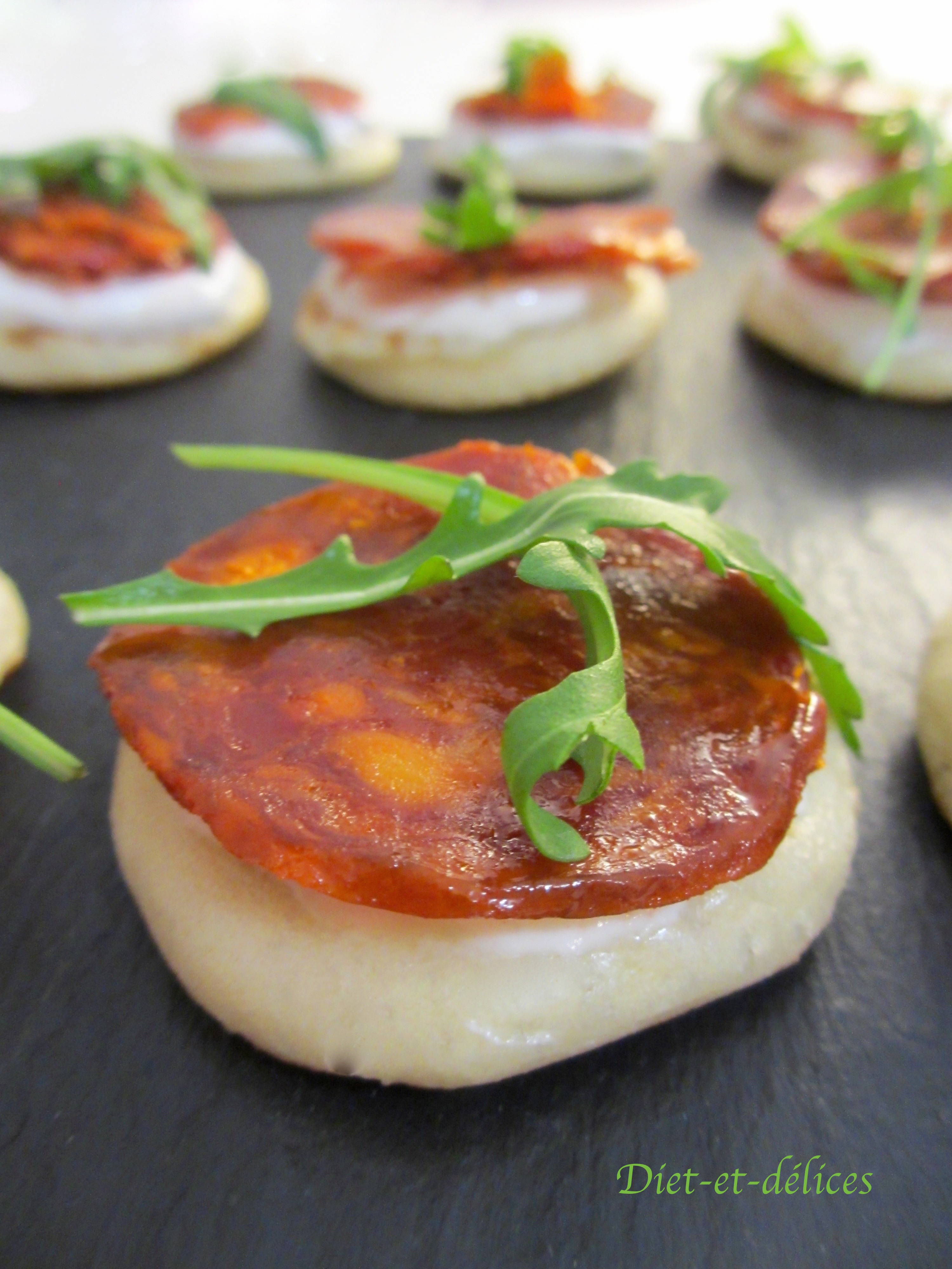 blinis, apéro, apéritif, chorizo, fromage blanc, roquette, paprika fumé
