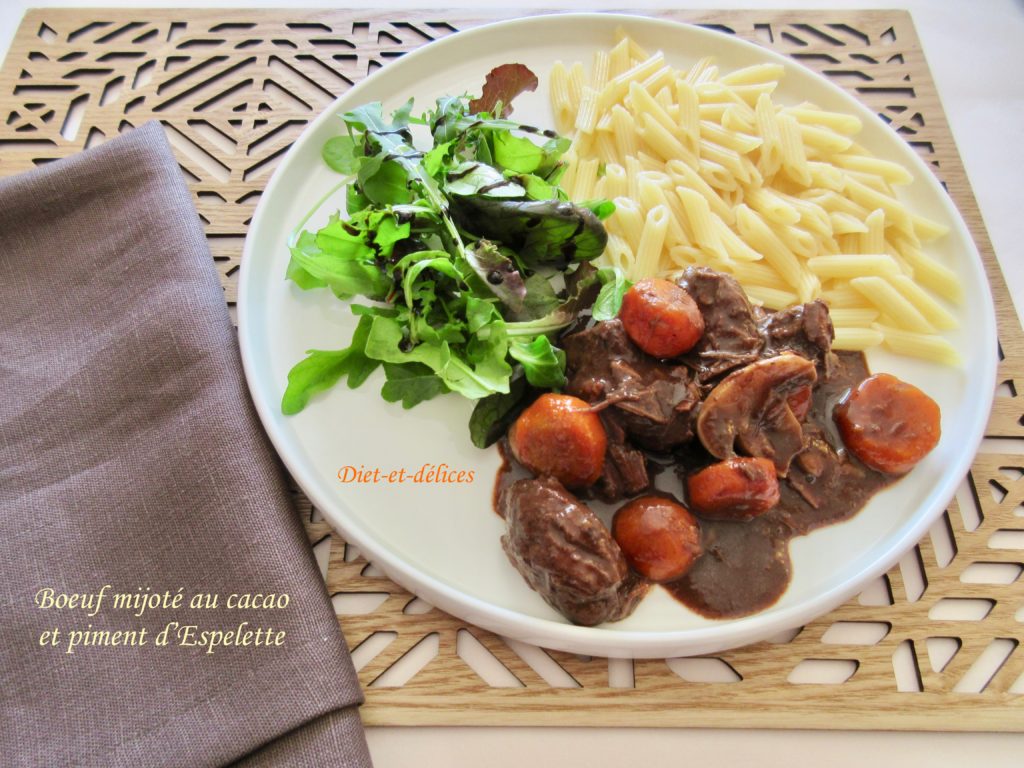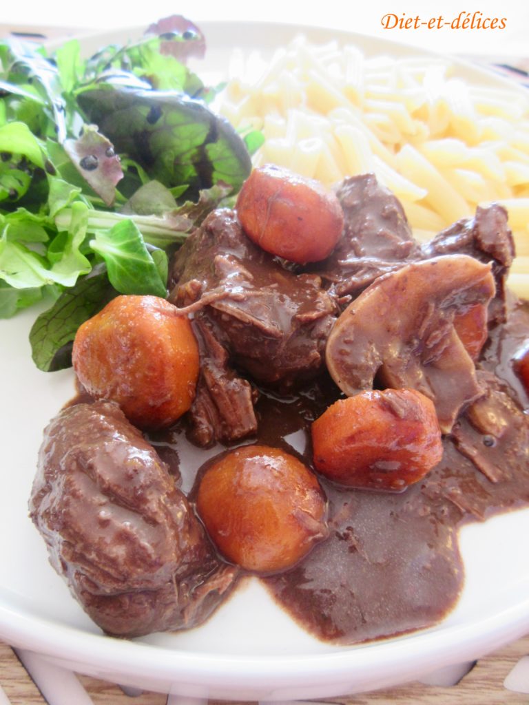 boeuf, boeuf à bourguignon, cacao, miel, carottes, champignons, viande mijotée, plat mijoté