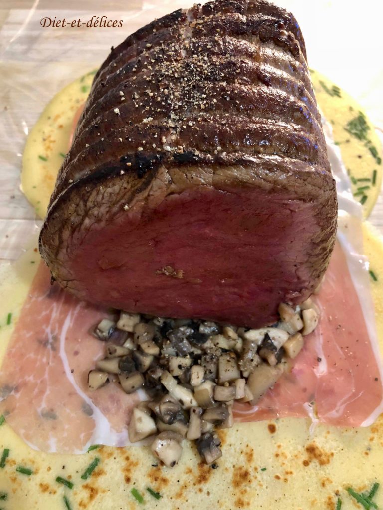 - Retirer le film alimentaire puis déposer le bœuf sur la pâte feuilletée.