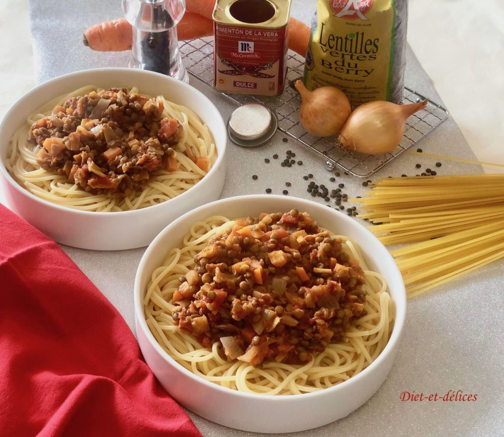 bolognaise, lentilles, lentilles vertes, bolognaise végétale, carotte, concassé de tomates, poireau, paprika fumé , végétarien bolognaise de lentilles, lentilles, lentilles vertes, carotte, concassé de tomates, poireau