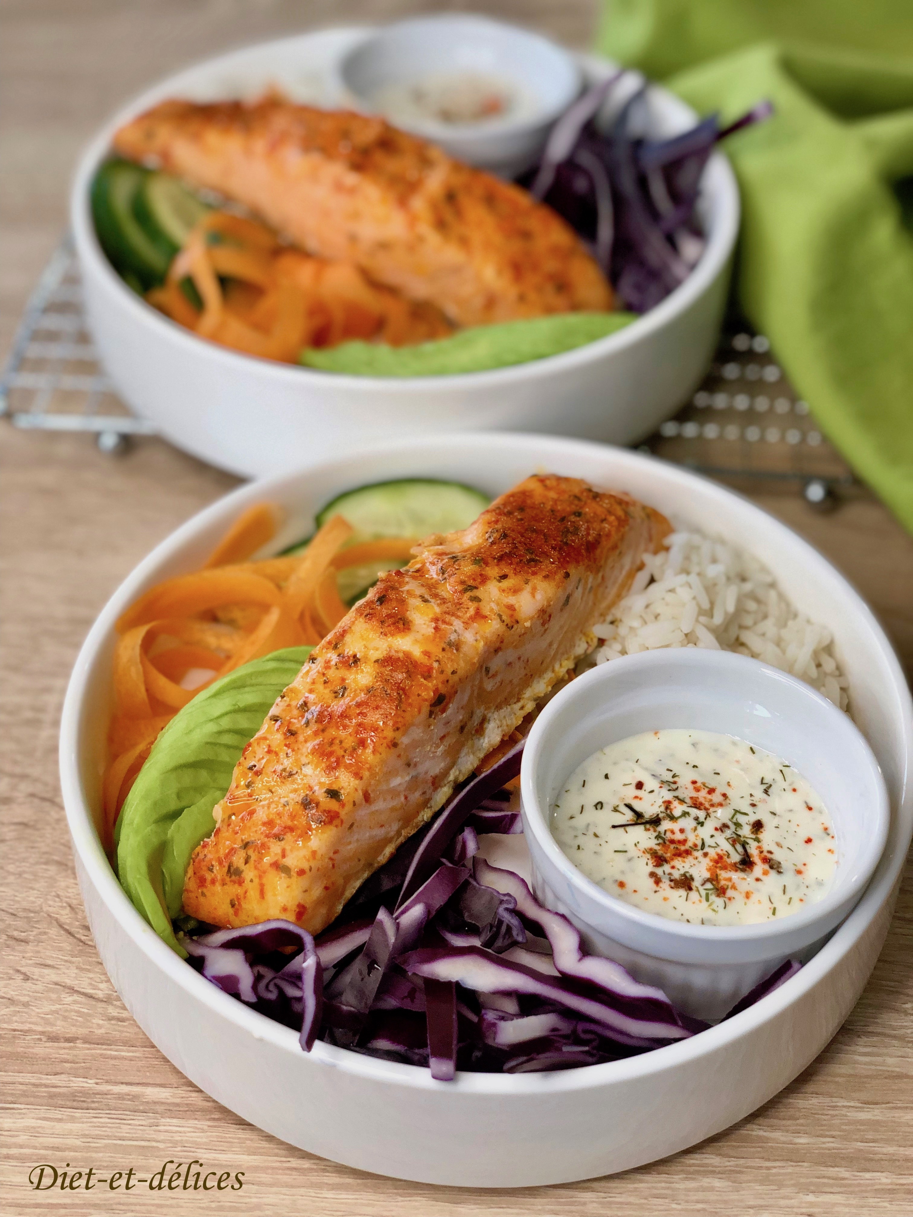 Accueil » Recettes » Légumes » Bowl au saumon mi-cuit et crudités