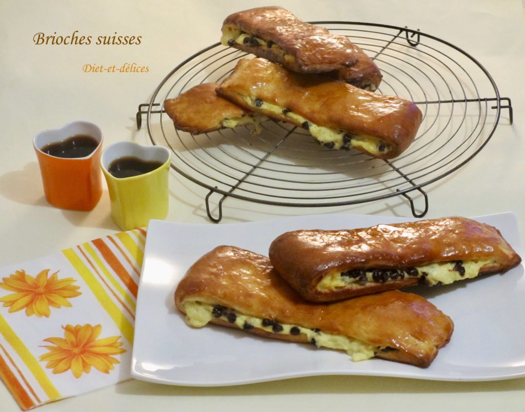 – La brioche suisse est aussi appelée suisse ou pavé suisse. Cette viennoiserie est une pâte levée garnie de crème pâtissière et de pépites de chocolat.