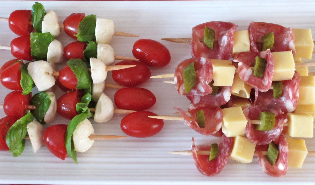 brochettes , brochettes apéritives,saucisson, saucisson cornichon, tomate mozzarella, mozzarella, gruyère, cornichon, basilic, apéro,apéritif
