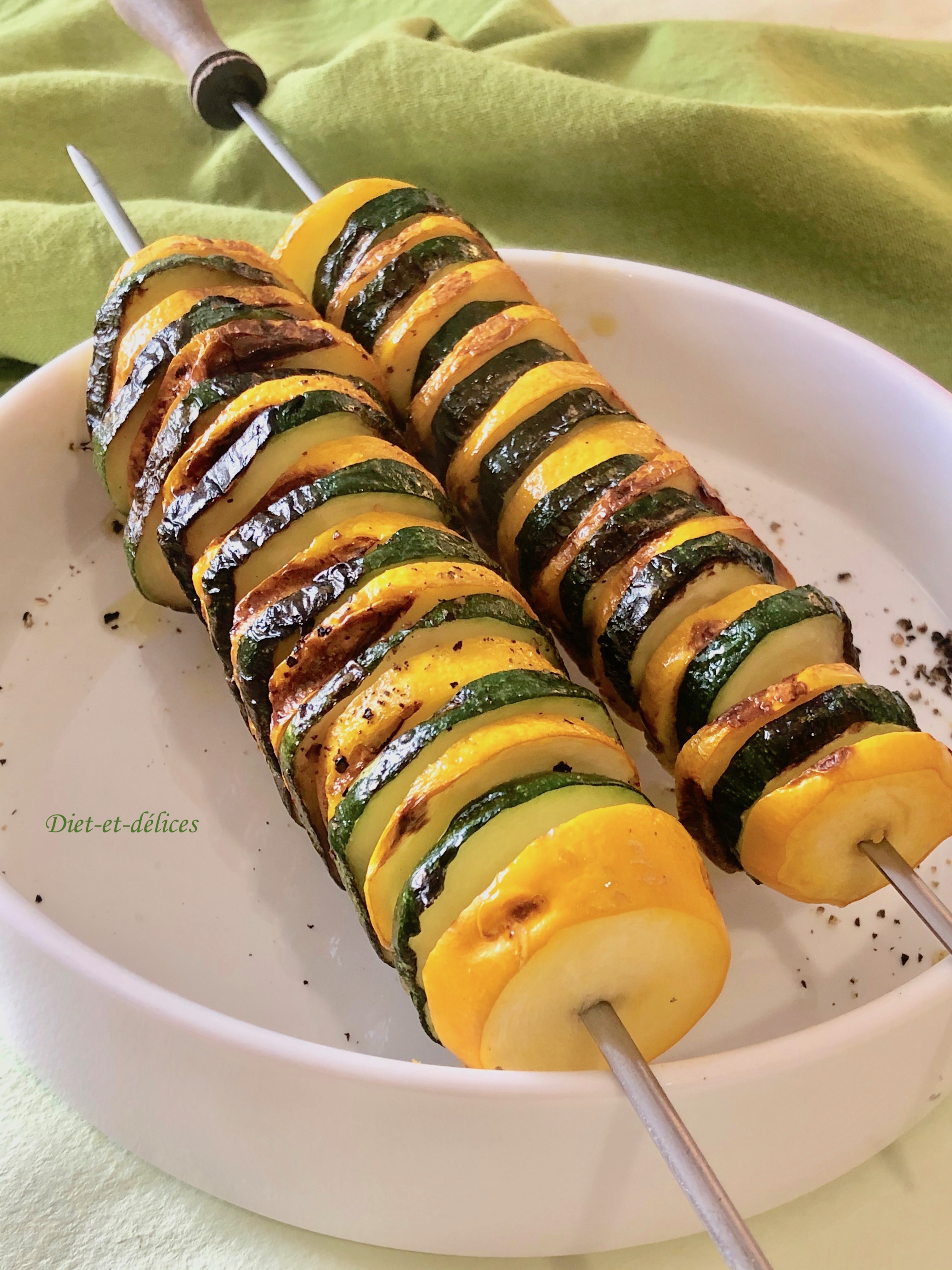 Des brochettes très facile à réaliser et quasiment sans aucune calorie. Elles peuvent accompagner viandes ou poissons pour un barbecue.