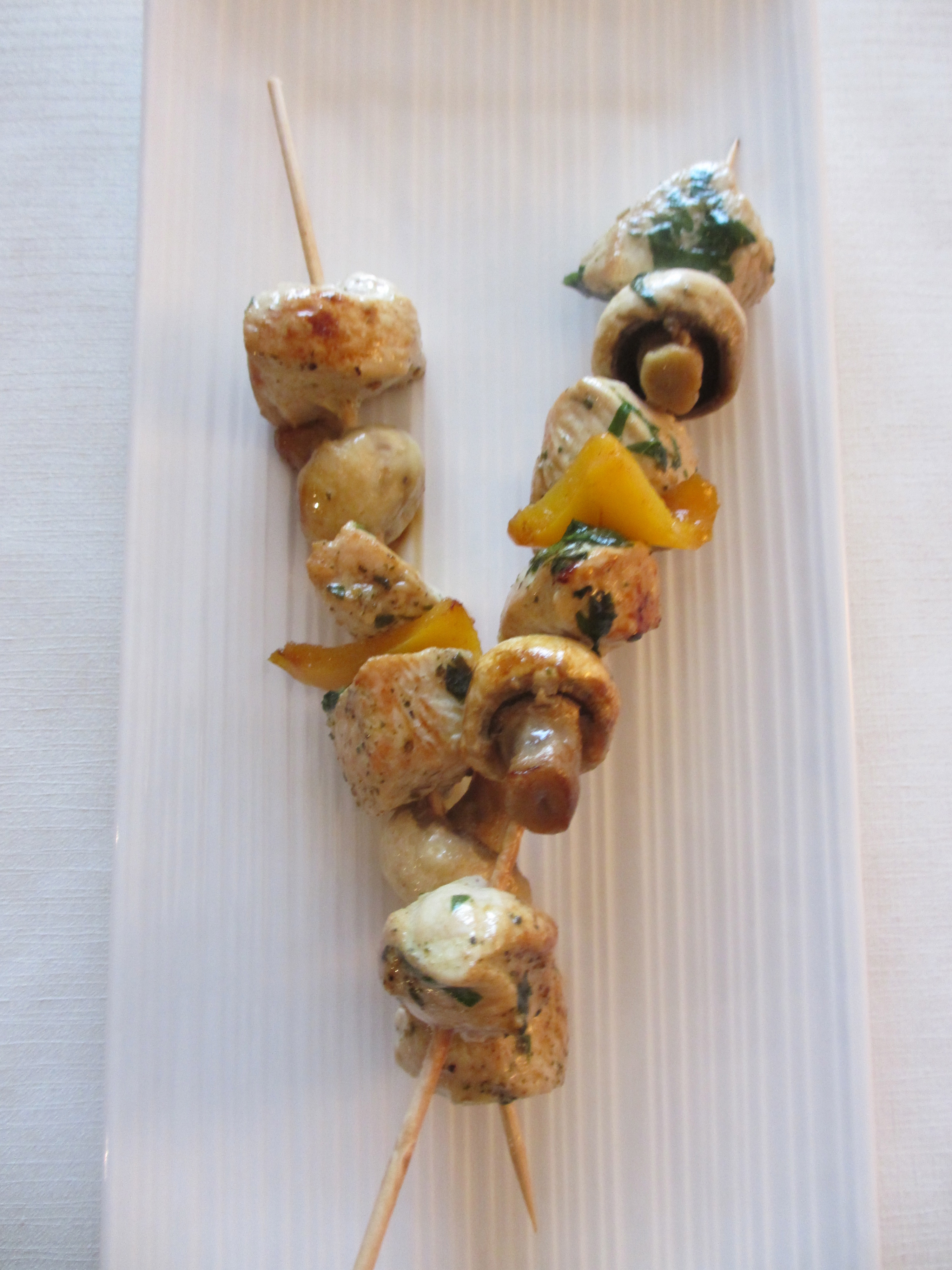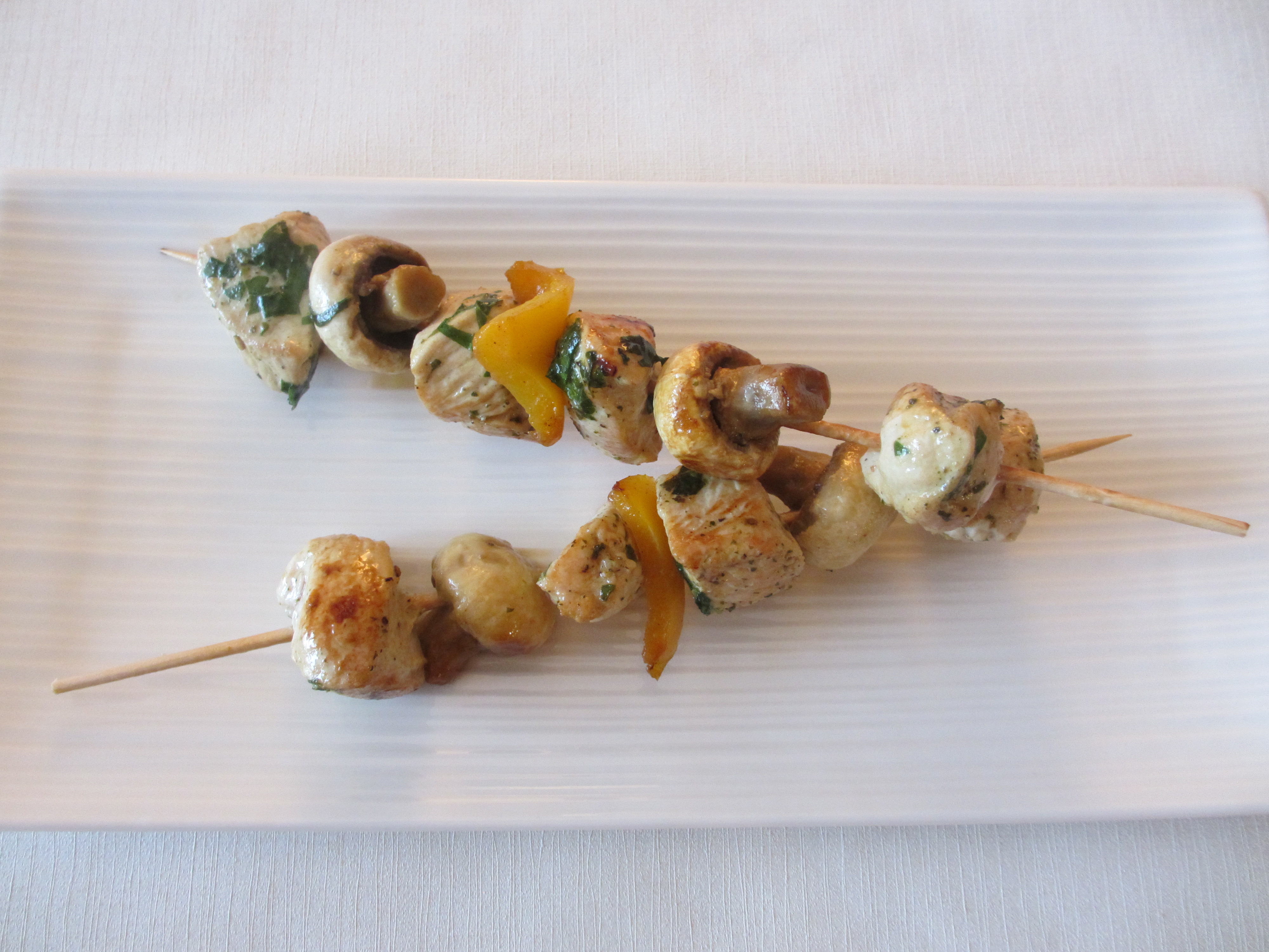 brochette, dinde, champignons, champignons frais, champignons de Paris,barbecue, grillade, viande, volaille, poivron, poivron jaune