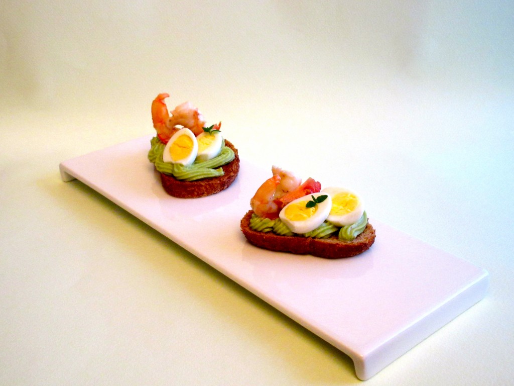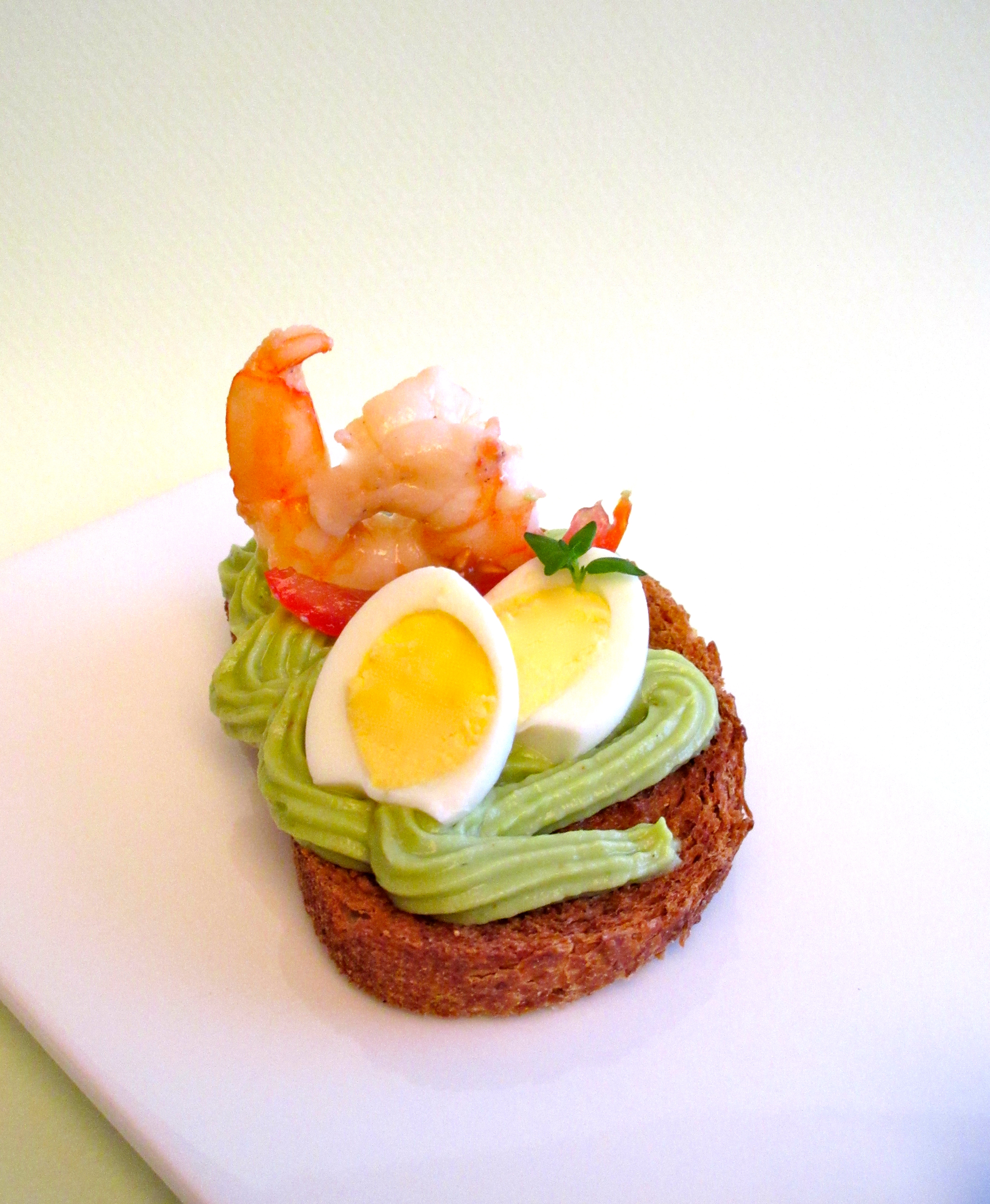 bruschetta, bruschetta à la crevette, crevette, oeufs de caille, oeufs durs de caille, guacamole, avocat, entrée, apéro, tartine, toast, canapé