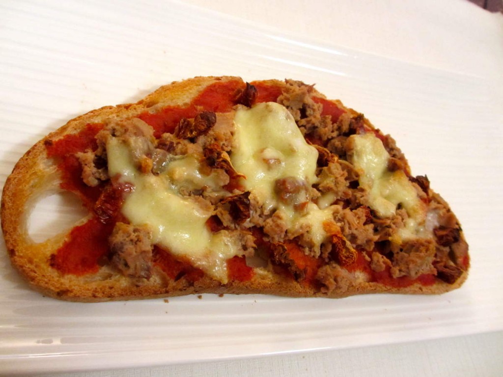 - Découper les tomates séchées en petits cubes et les repartir sur les tartines.