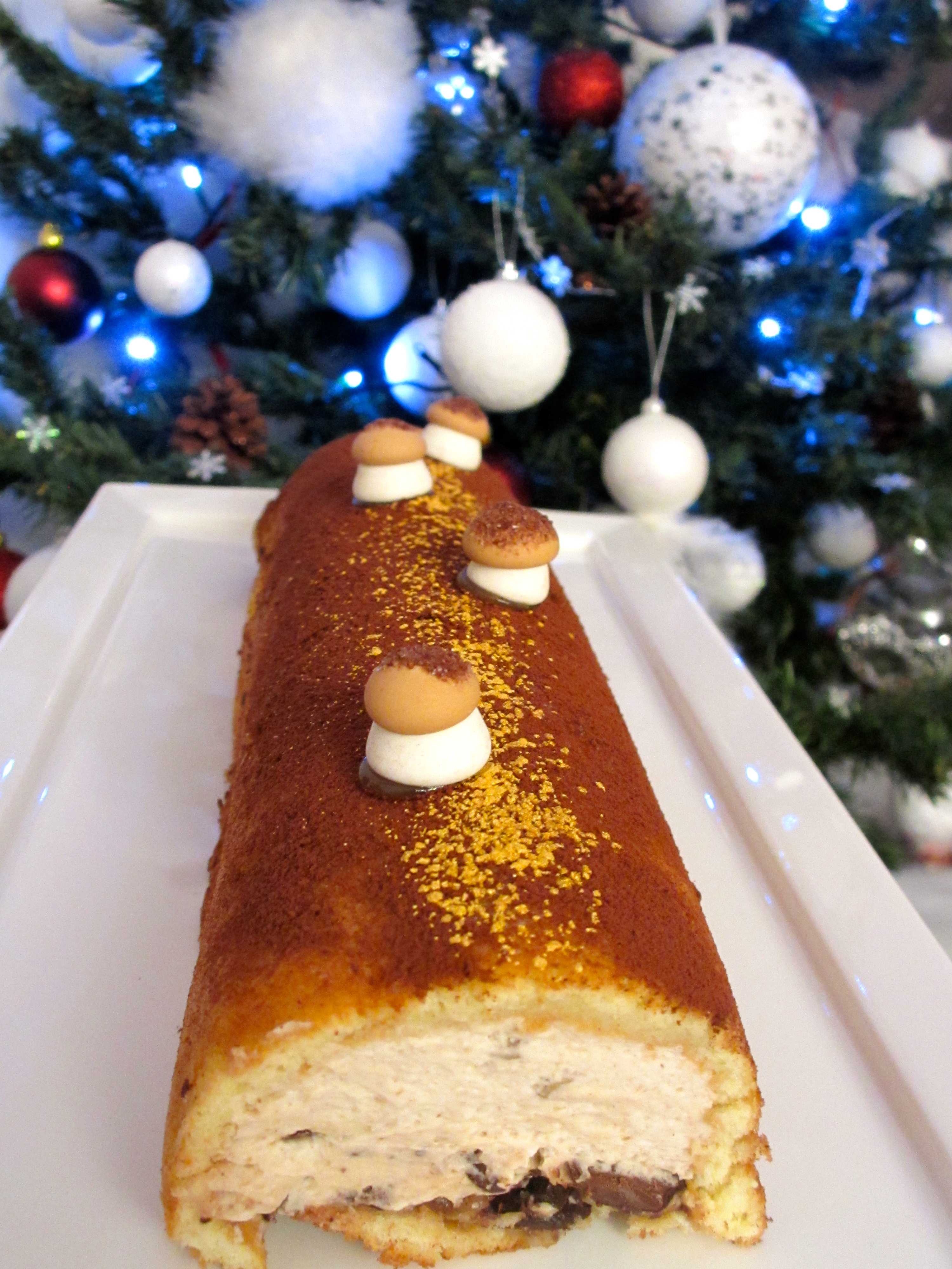 bûche, bûche de Noël,bûche aux marrons, marrons, crème de marrons, crème de châtaigne, génoise, chocolat noir, dessert, dessert de fêtes,dessert de Noël, Noël