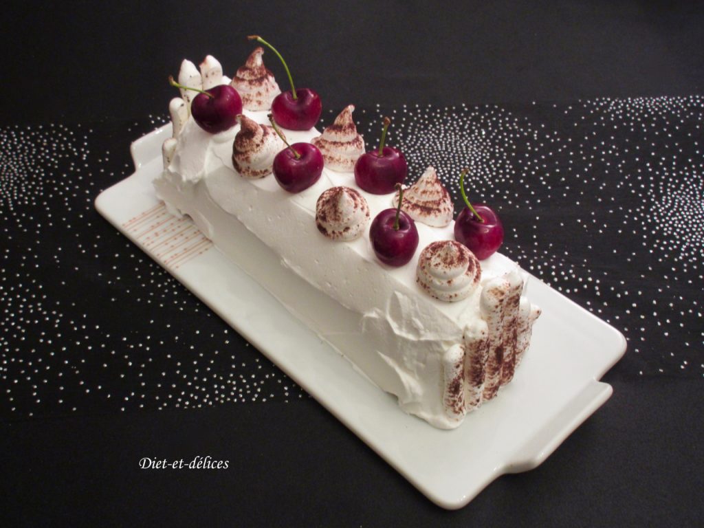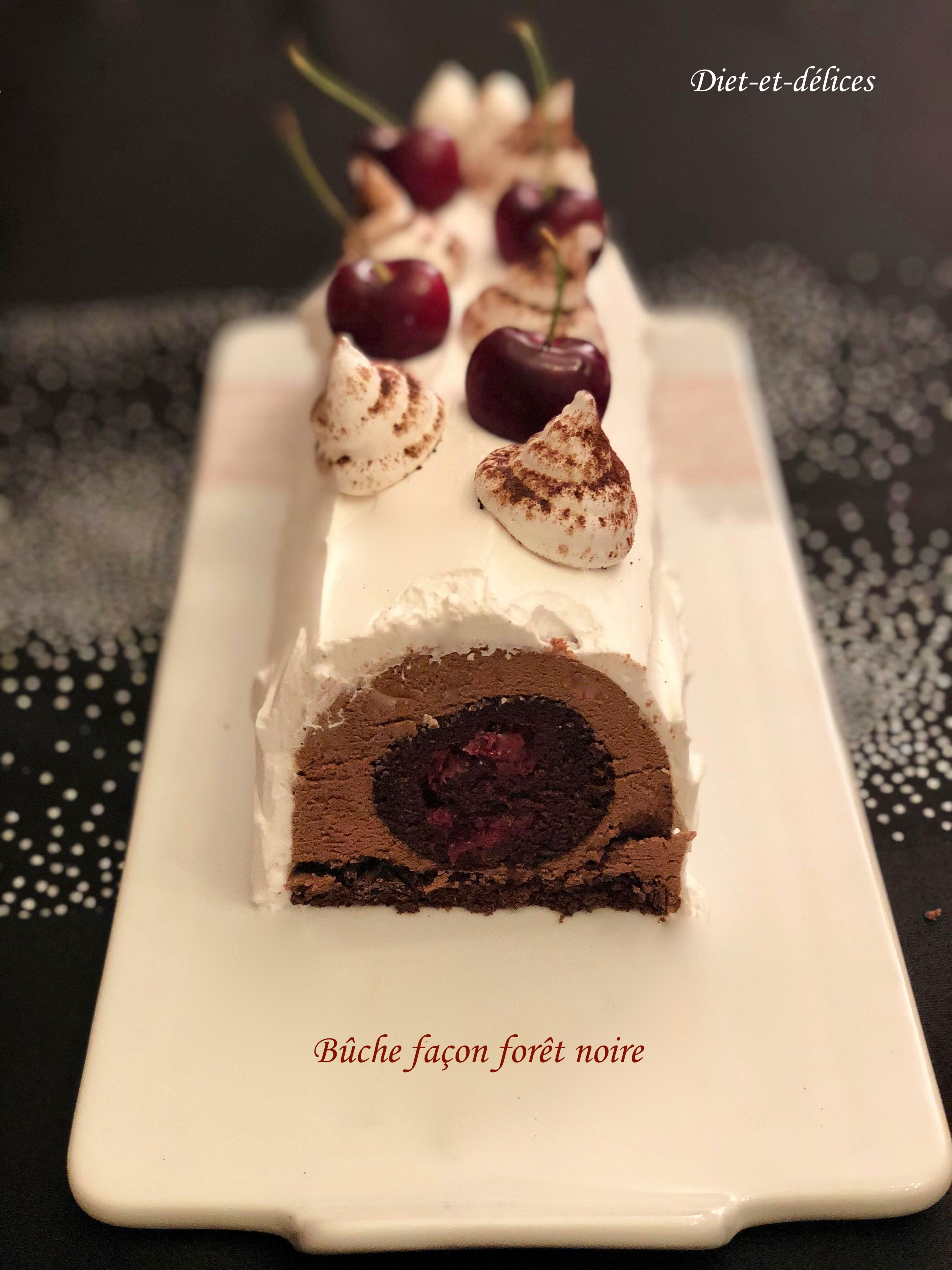 bûche, forêt noire, cerises, bûche façon forêt noire, kirsch, chocolat, dessert, noël