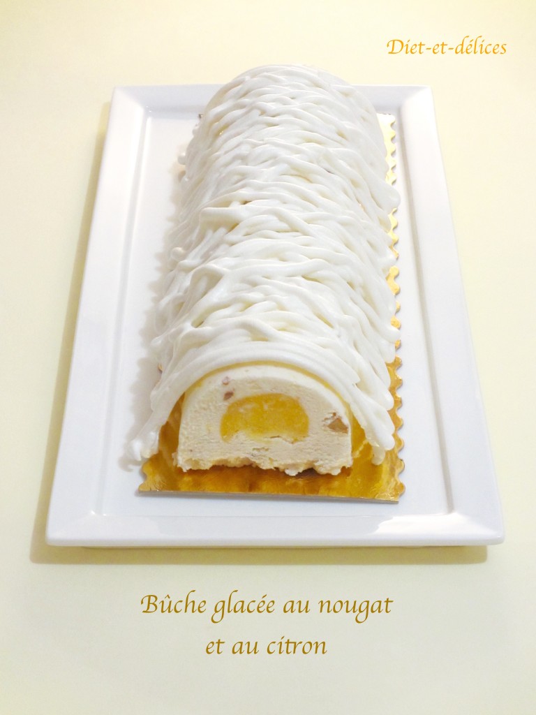 bûche, bûche glacée, Noël, nougat, citron, citron confit, meringue, fêtes, dessert