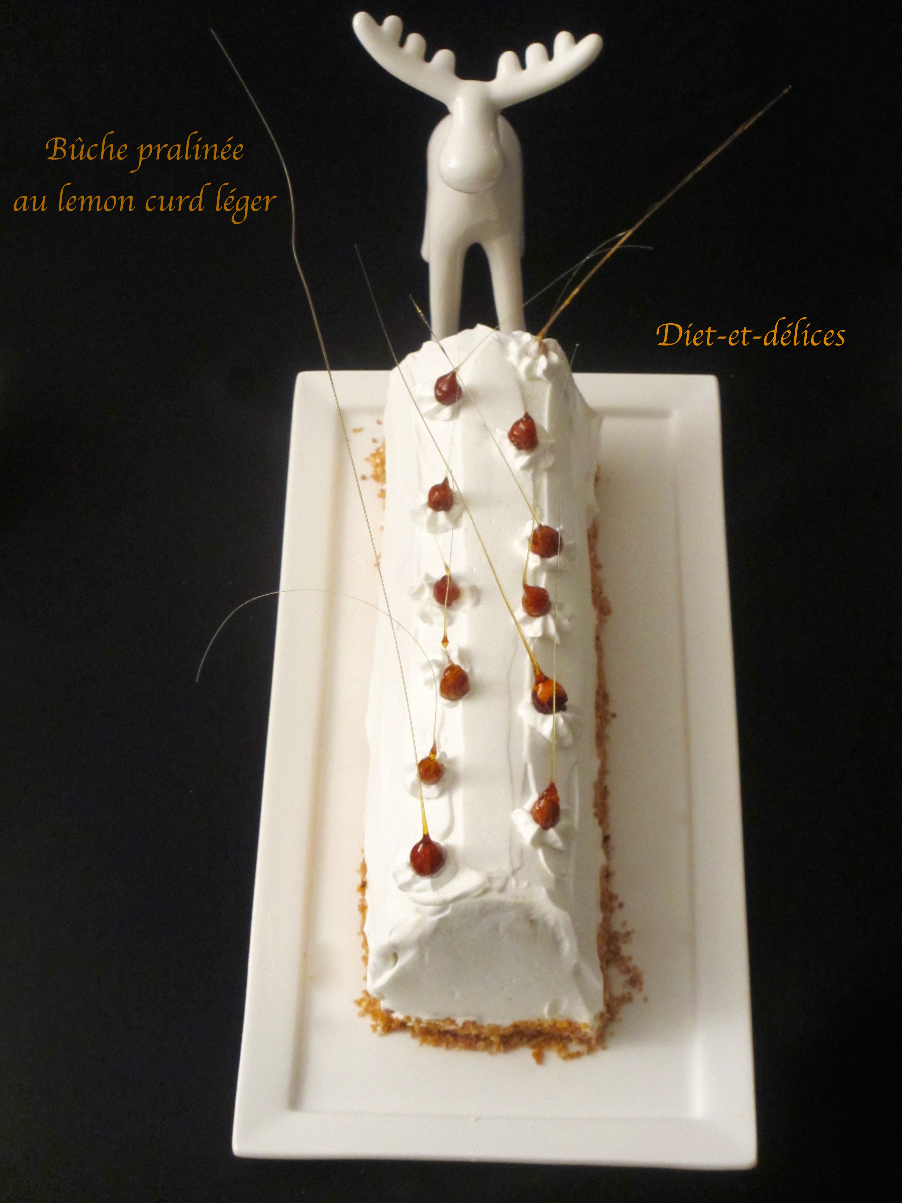 Accueil » Recettes » Desserts » Bûche pralinée au lemon curd léger
