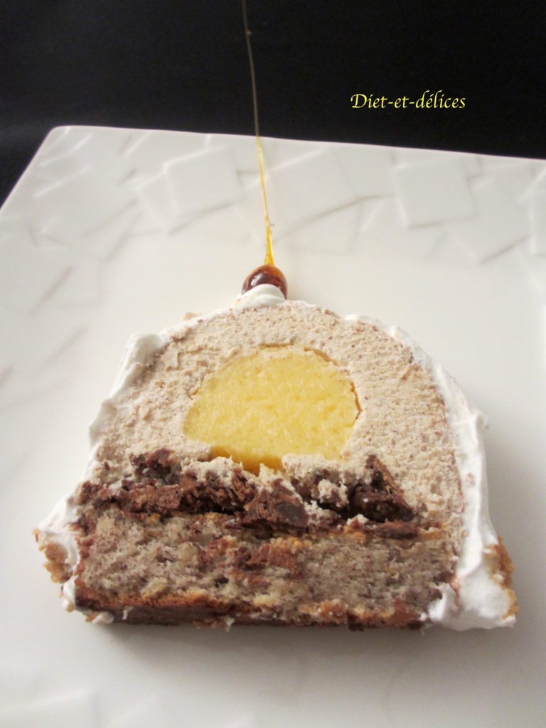 bûche, Noël , lemon curdbûche pralinée, pralin, pralinécaramel, noisettes caramélisées, dessert