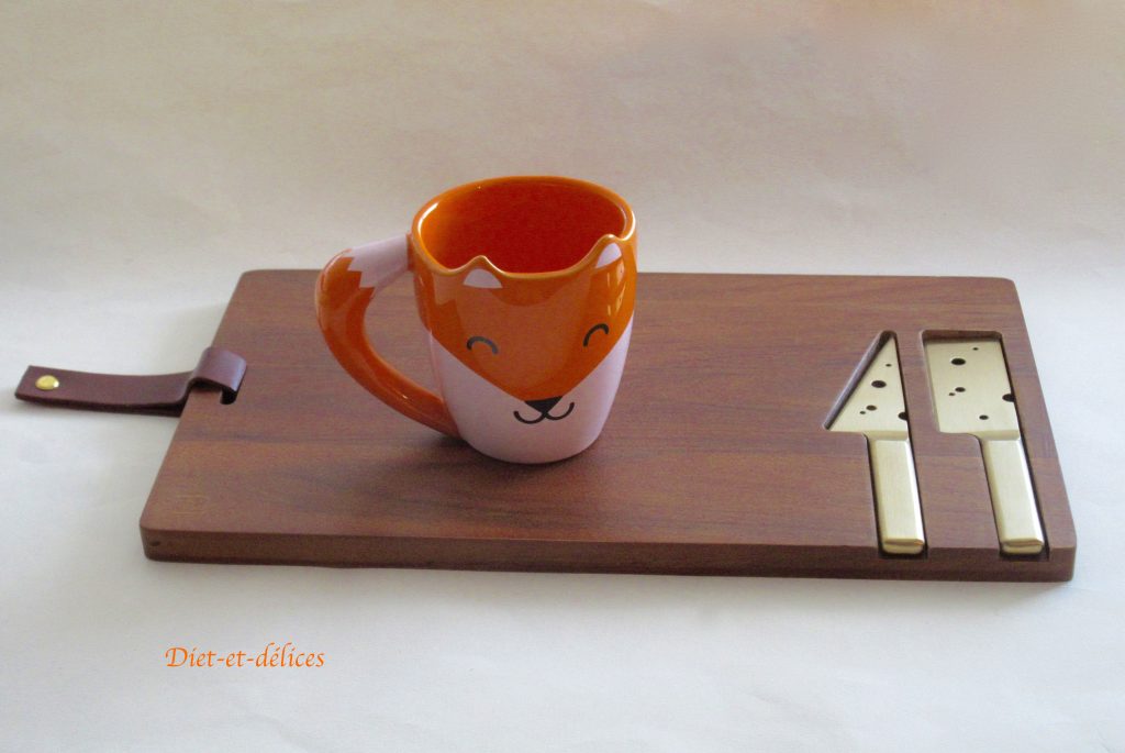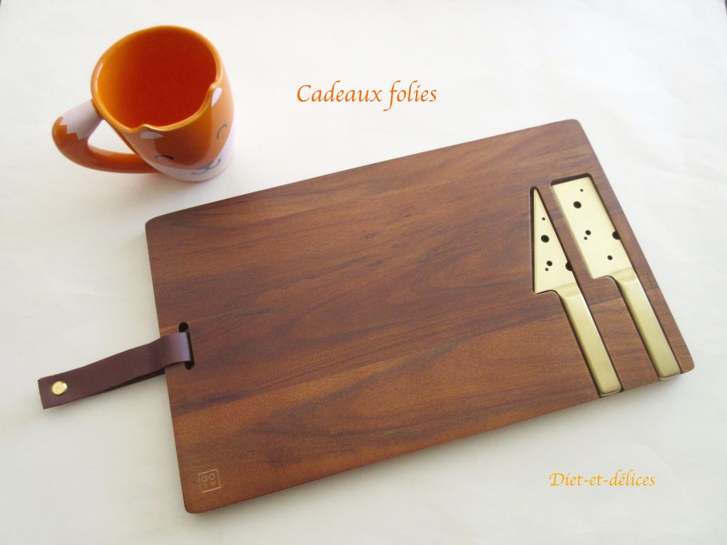 - une planche à découper pour fromages avec ses couteaux, avec une sangle en cuir, pratique pour accrocher la planche