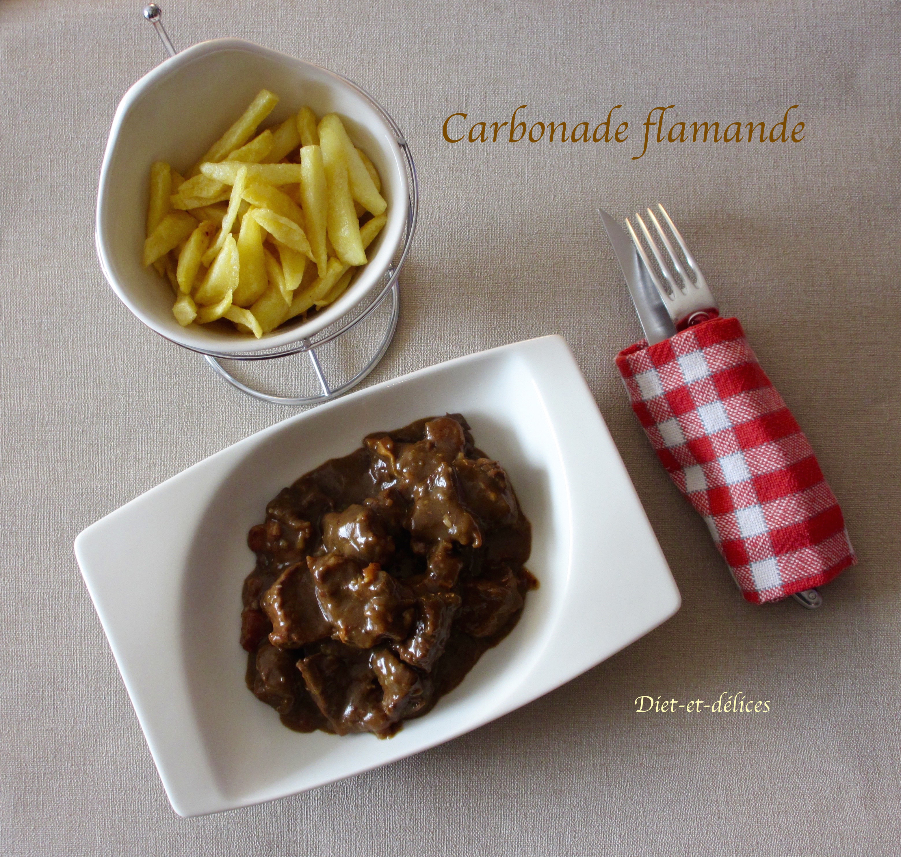 – Traditionnellement, la carbonade est servie avec des frites (privilégier les frites cuites au four pour éviter un apport calorique trop important). Ce plat peut aussi s’accompagner d’une bière brune.
