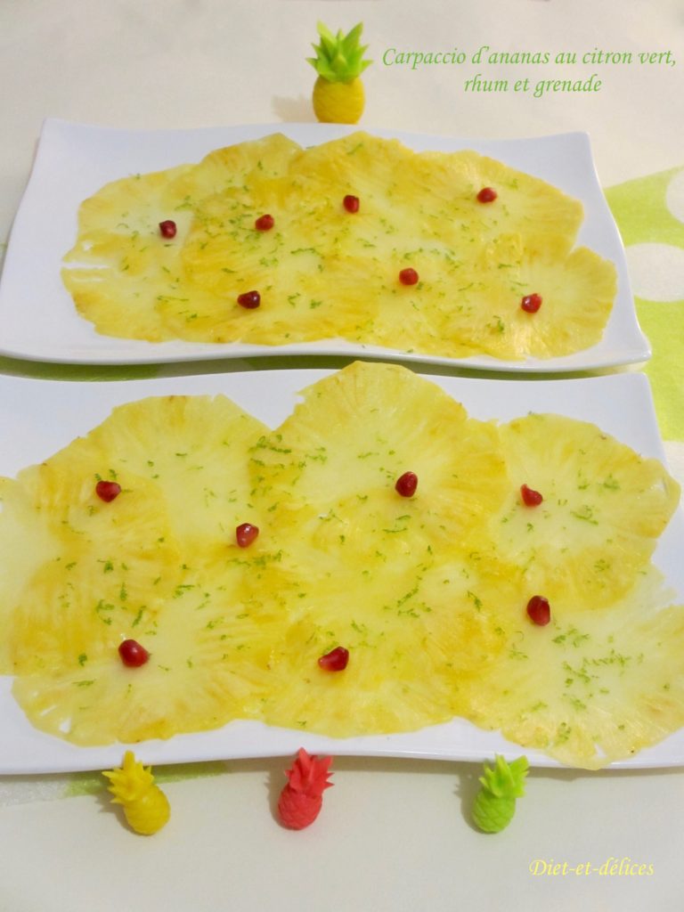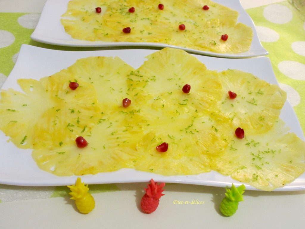 carpaccio, ananas, grenadecarpaccio d’ananas, dessert, rhumgrenade, diététique