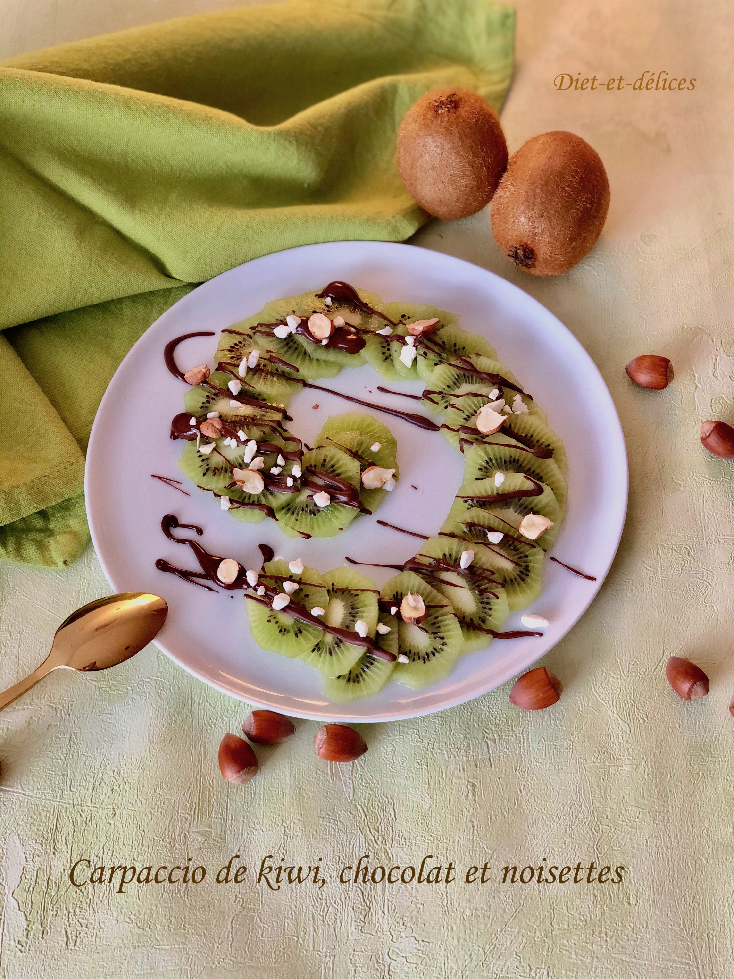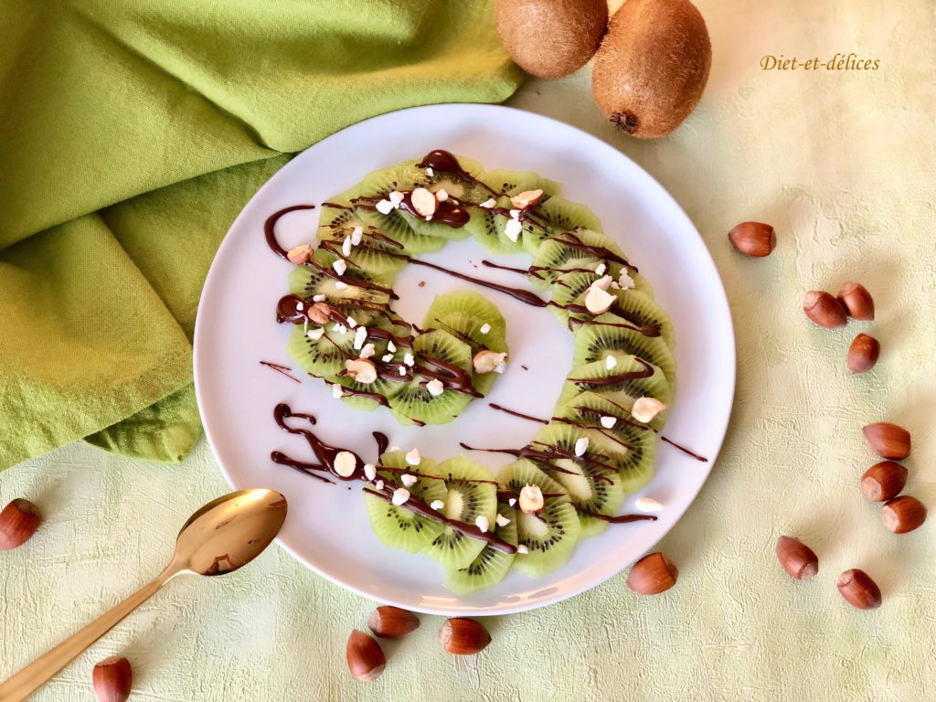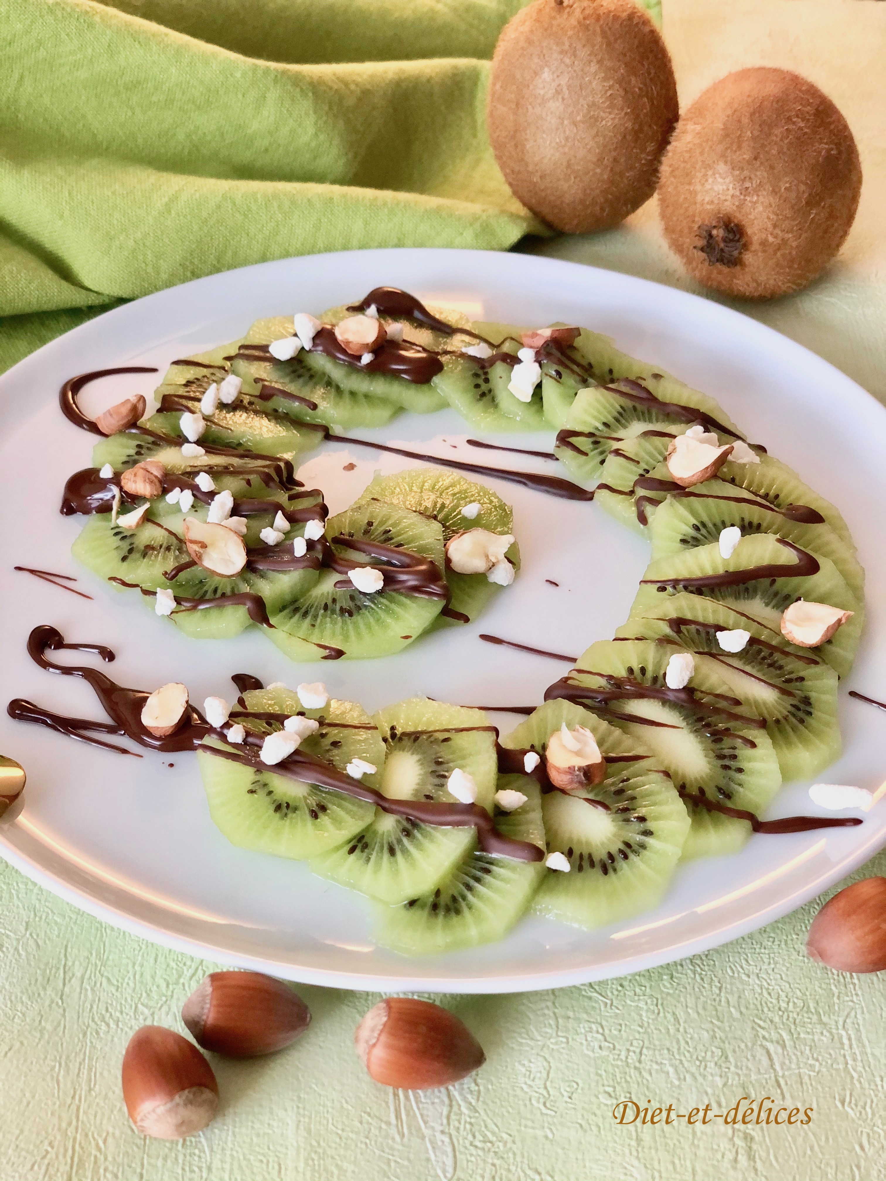 kiwi, carpaccio, dessert, noisettes, carpaccio de kiwi, chocolat