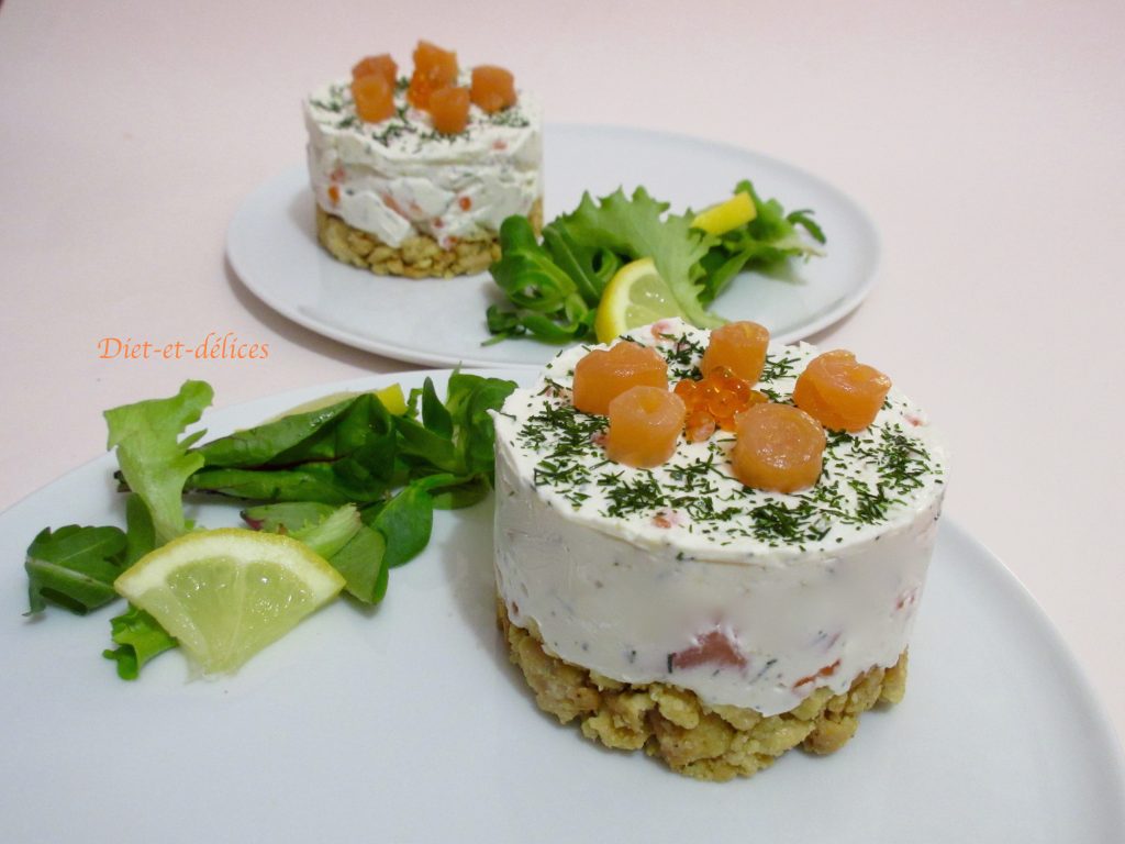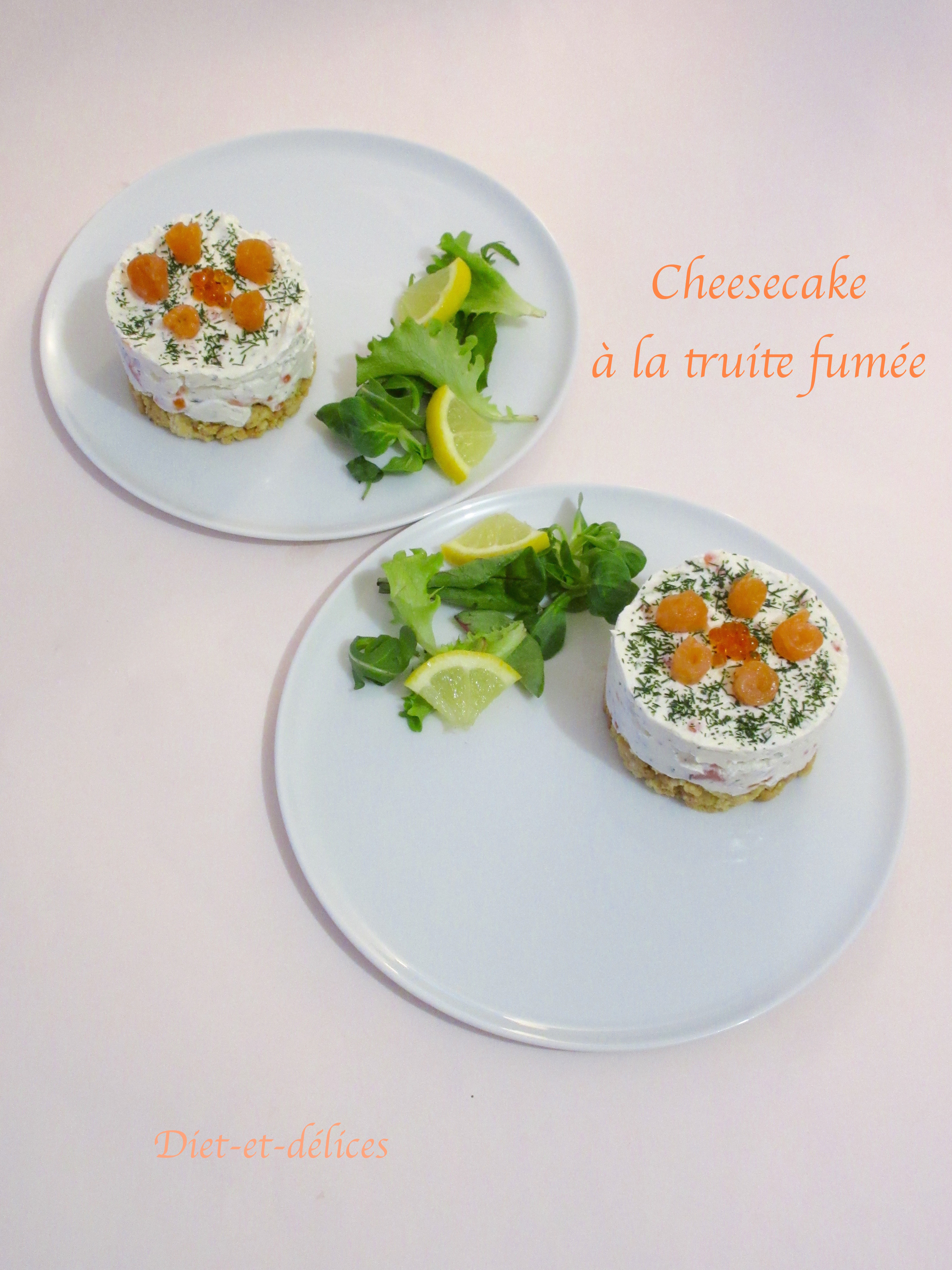cheesecake, entrée, entrée froide, truite, truite fumée, philadelphia, ricotta, fromage frais, biscuits apéritifs, oeufs de truite, aneth, poisson