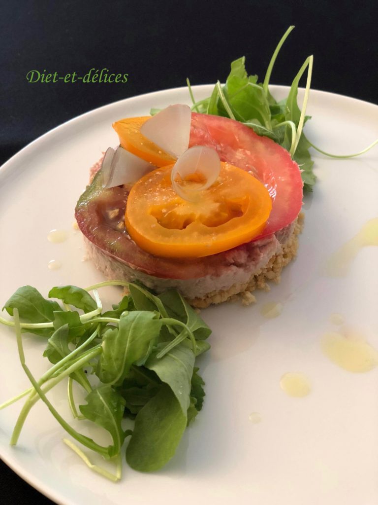 Accueil » Recettes » Légumes » Cheesecake de thon et carpaccio de tomates