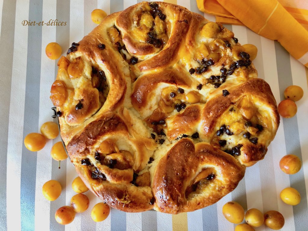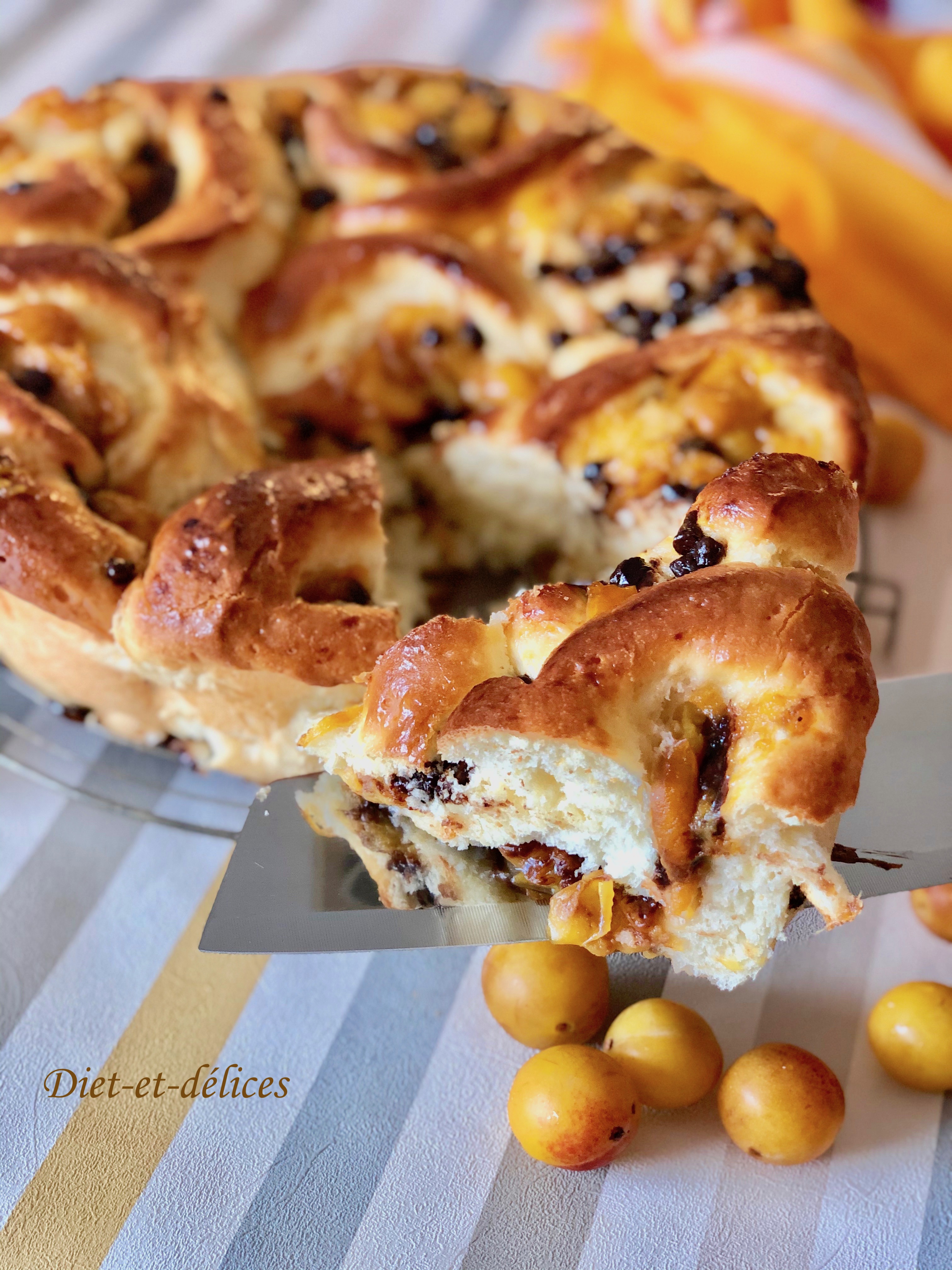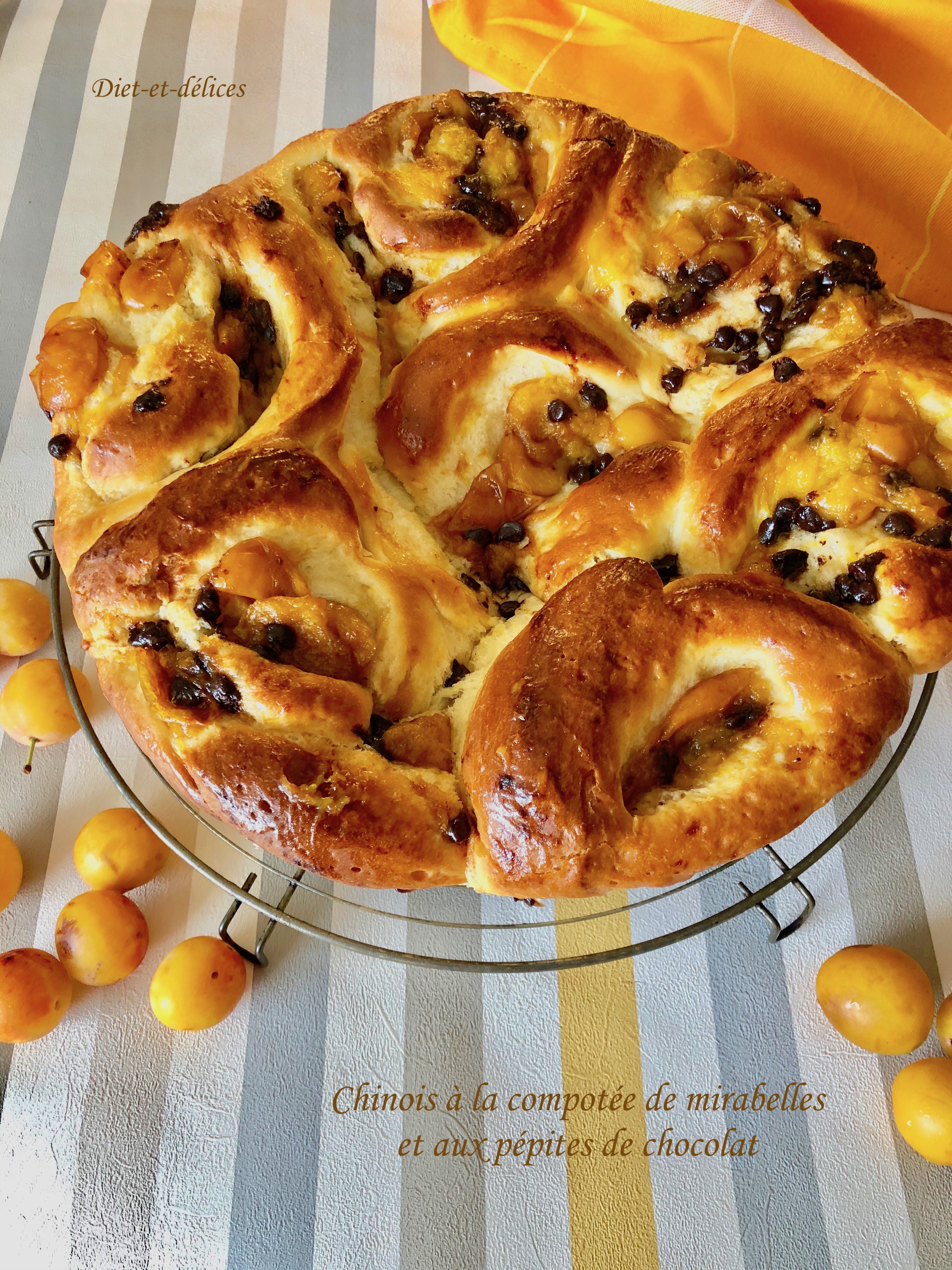 chinois, brioche, petit déjeuner, chinois à la mirabelle, pépites de chocolat, mirabelles