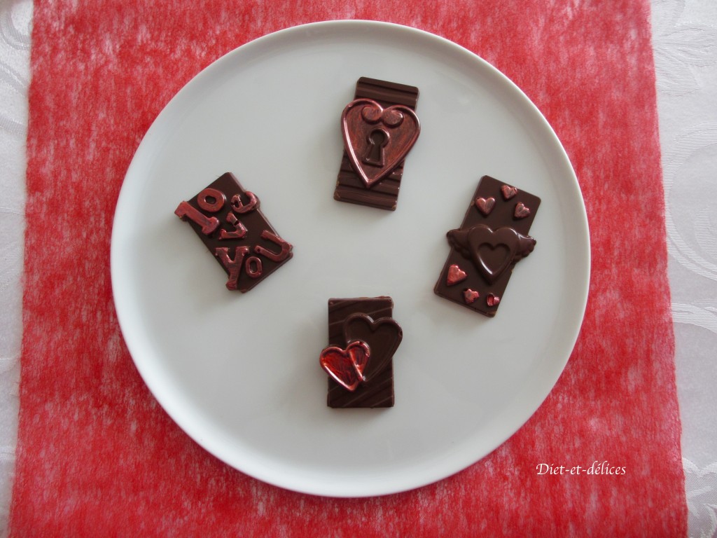 - Faire chauffer le chocolat à 31°C et le verser dans les moules à message « in love ».