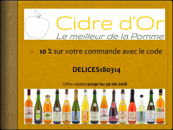 Dans le cadre de ce partenariat, j’ai le plaisir de vous faire profiter de 10% de réduction sur l’ensemble du site Cidre d’Or jusqu’au 30 juin 2018.