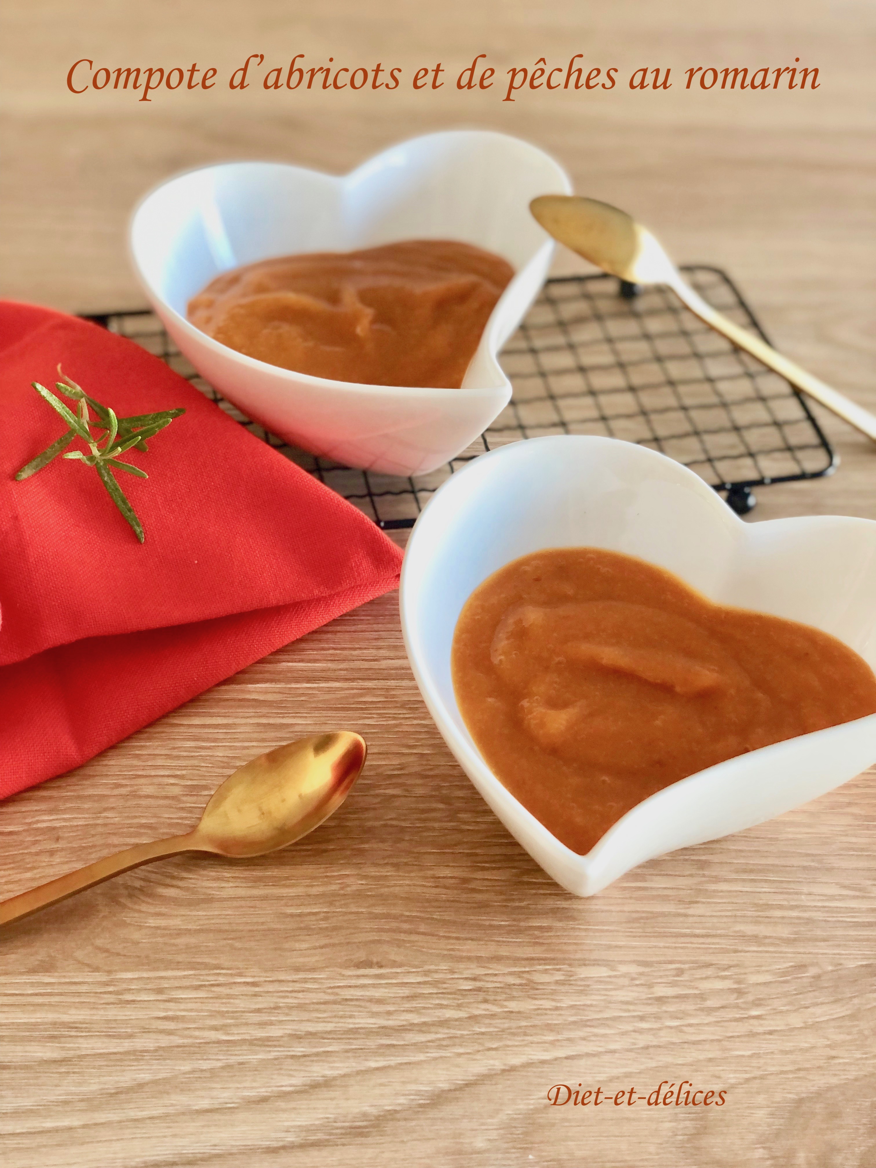 dessert, compote, pêche, romarin, compote de pêches, abricot