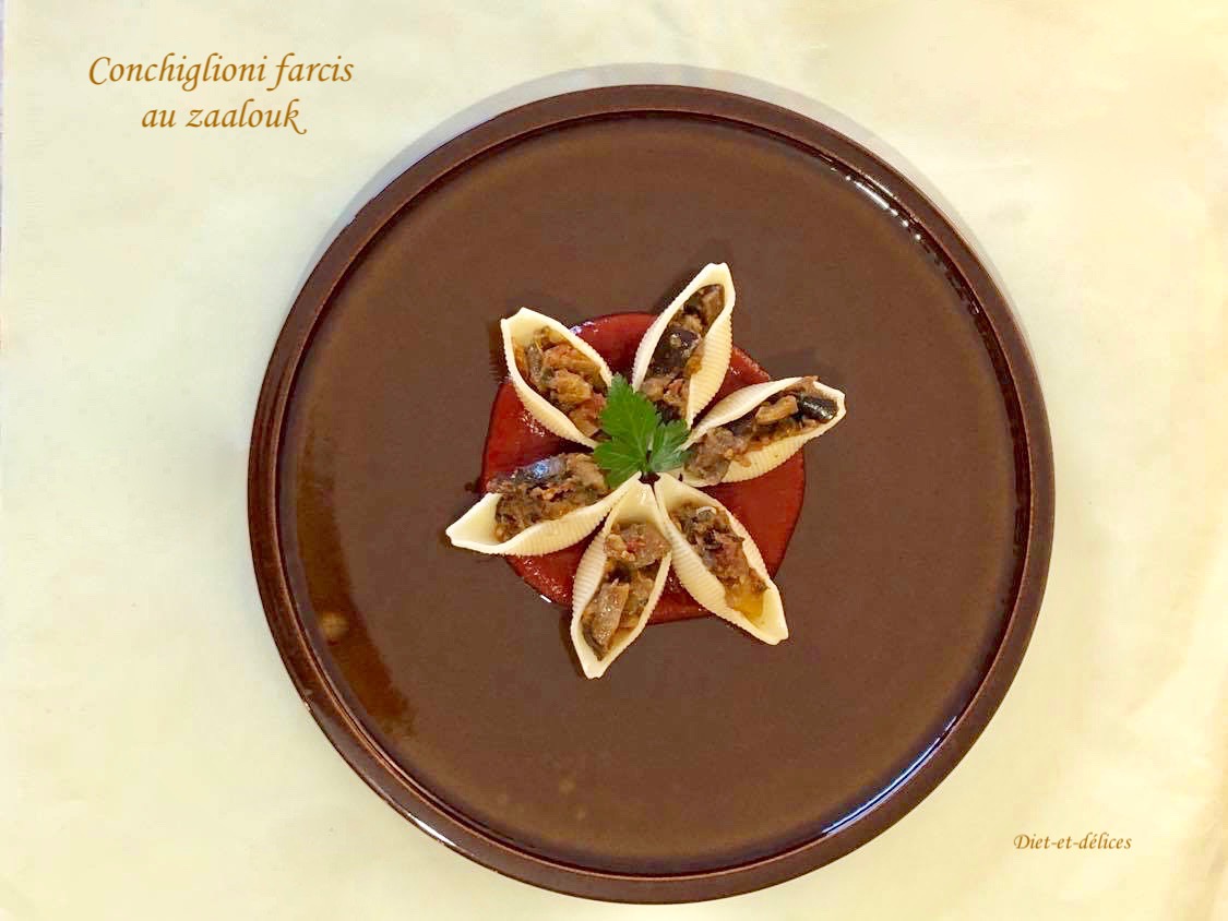pâtes, conchiglioni, zaalouk, pâtes aux aubergines, épices, végétarien, pâtes, conchiglioni, zaalouk, pâtes aux aubergines, épices
