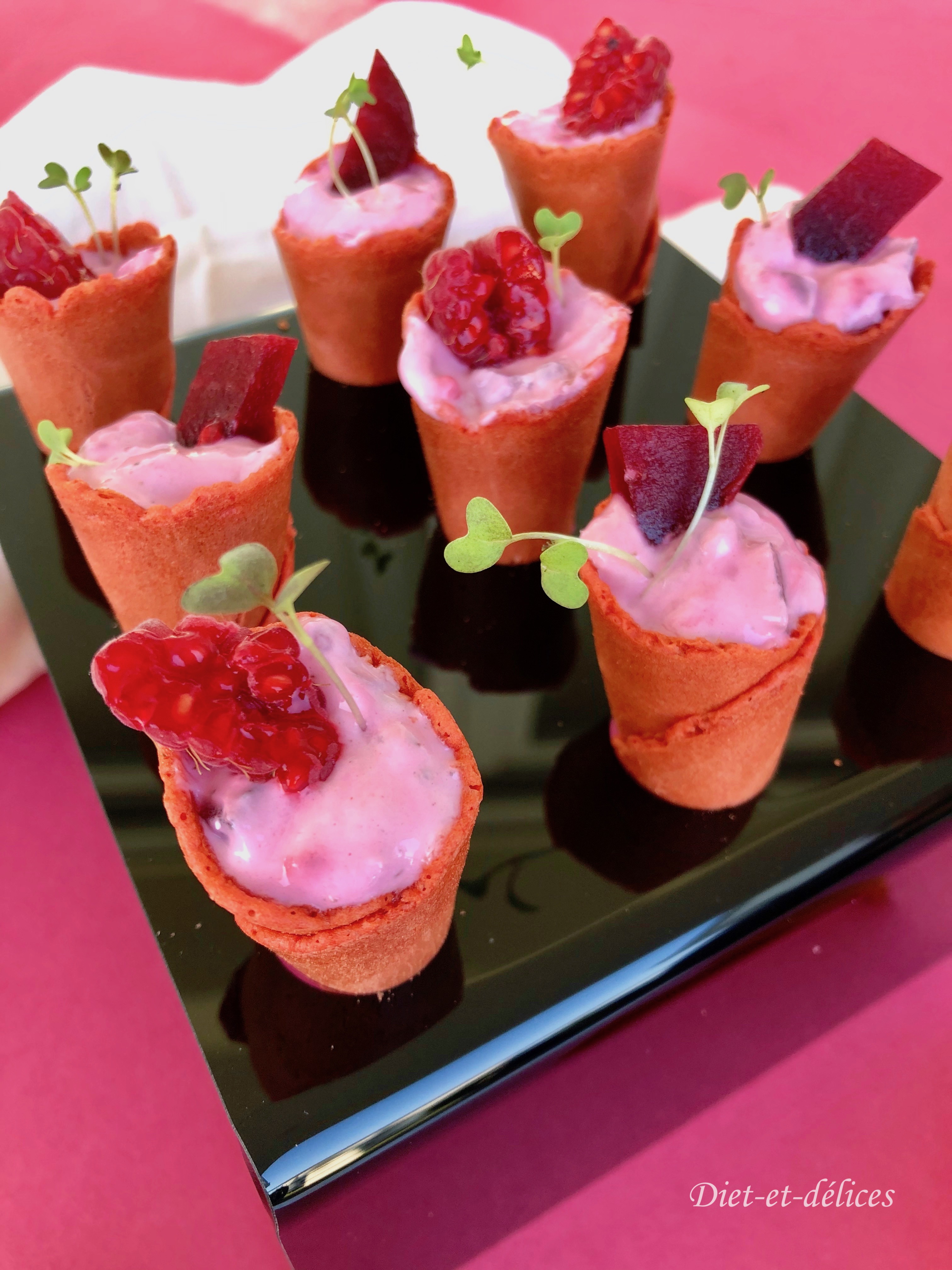 apéritif, apéro, cônes apéritifs, betterave, framboise, fromage blanc